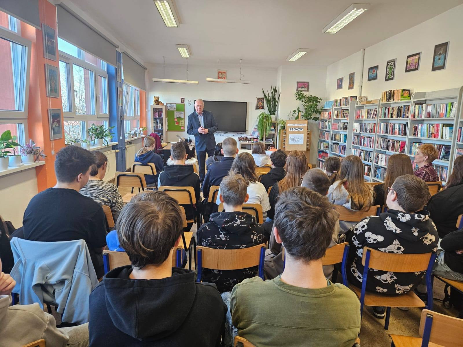 Uczniowie chętnie angażowali się w spotkanie, zadawali dodatkowe pytania dotyczące spraw społecznych. W części końcowej uczestnicy otrzymali bardzo cenne upominki, książki o tematyce związanej z Parlamentem, do wykorzystania na zajęciach WOS-u, a także rycinę przedstawiającą Sejm RP.
