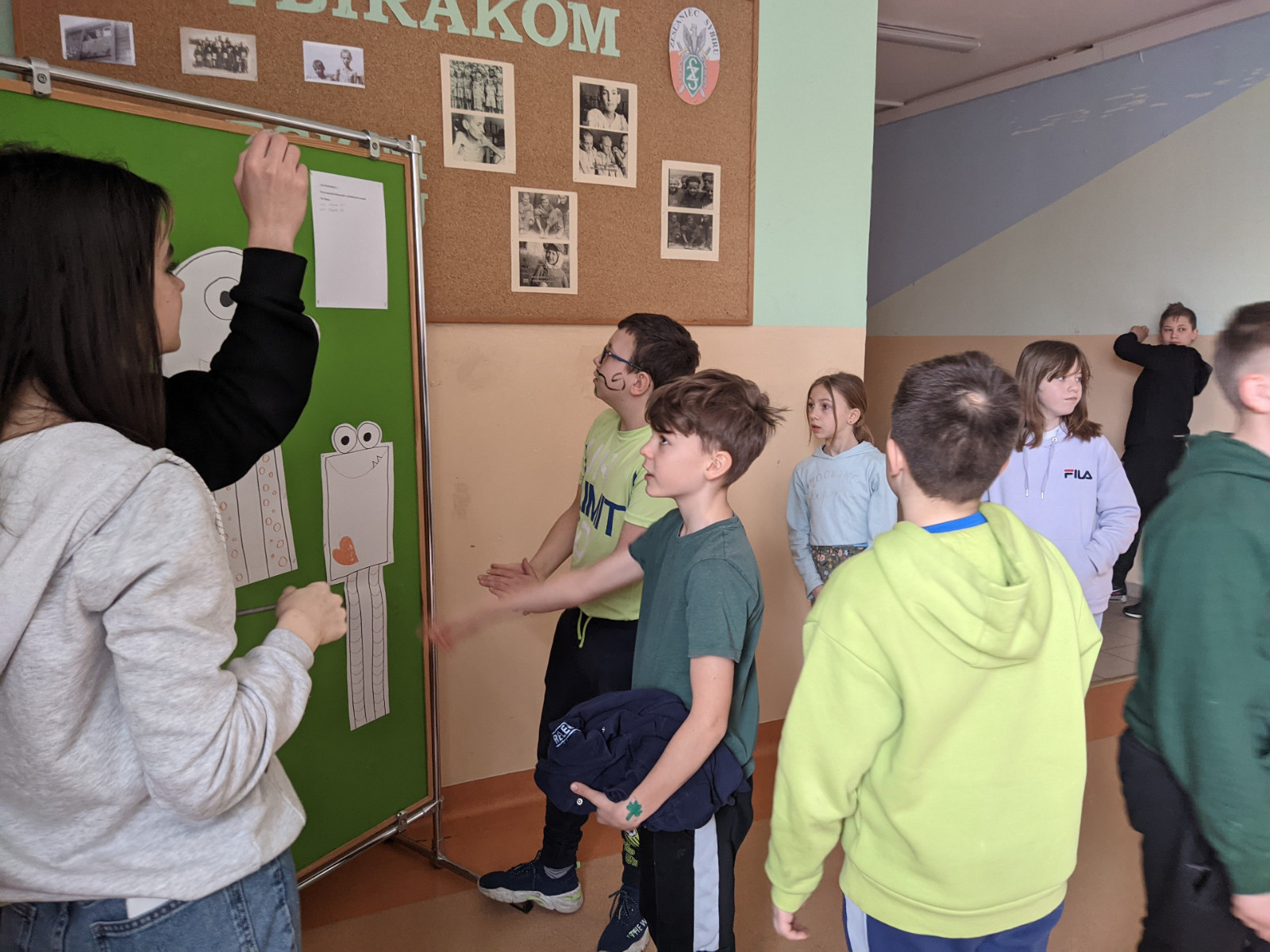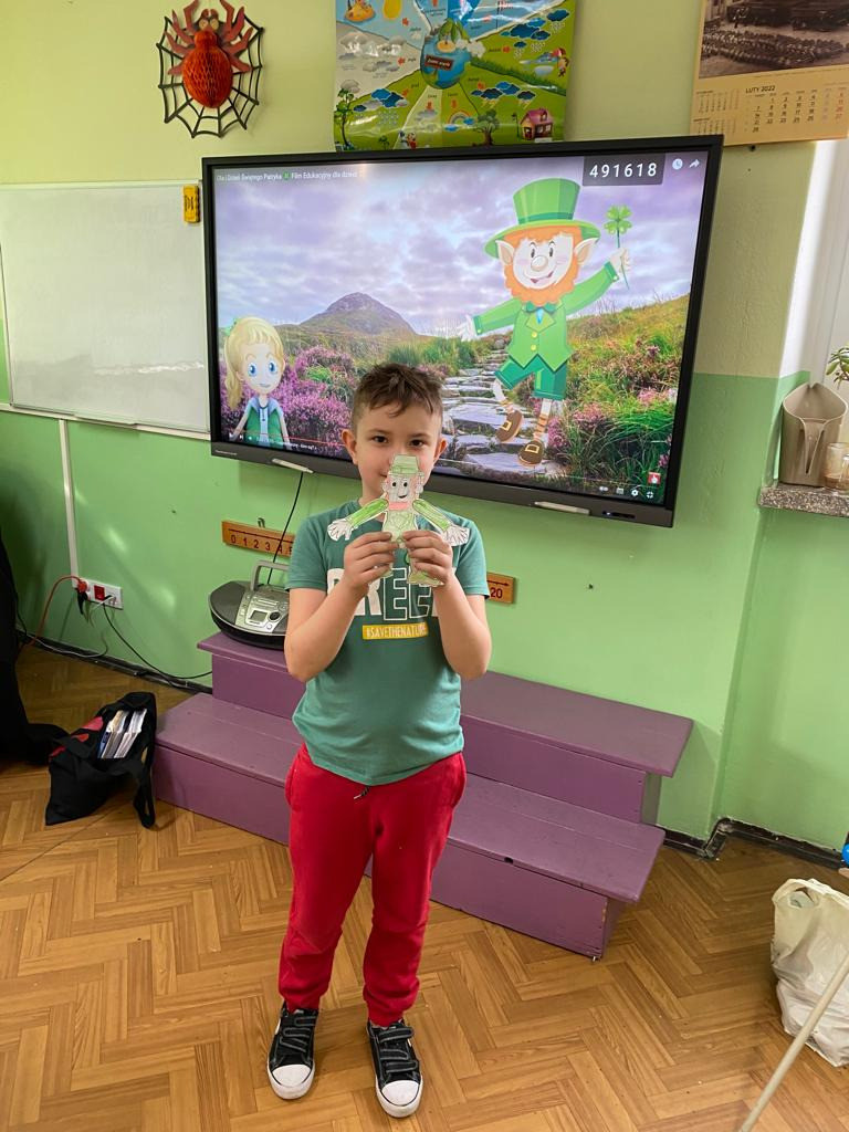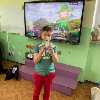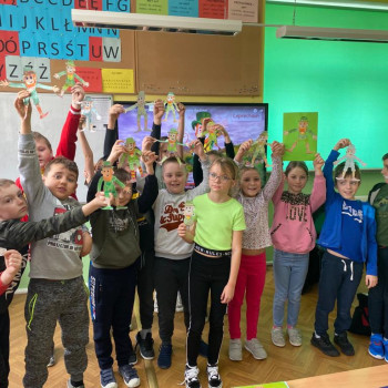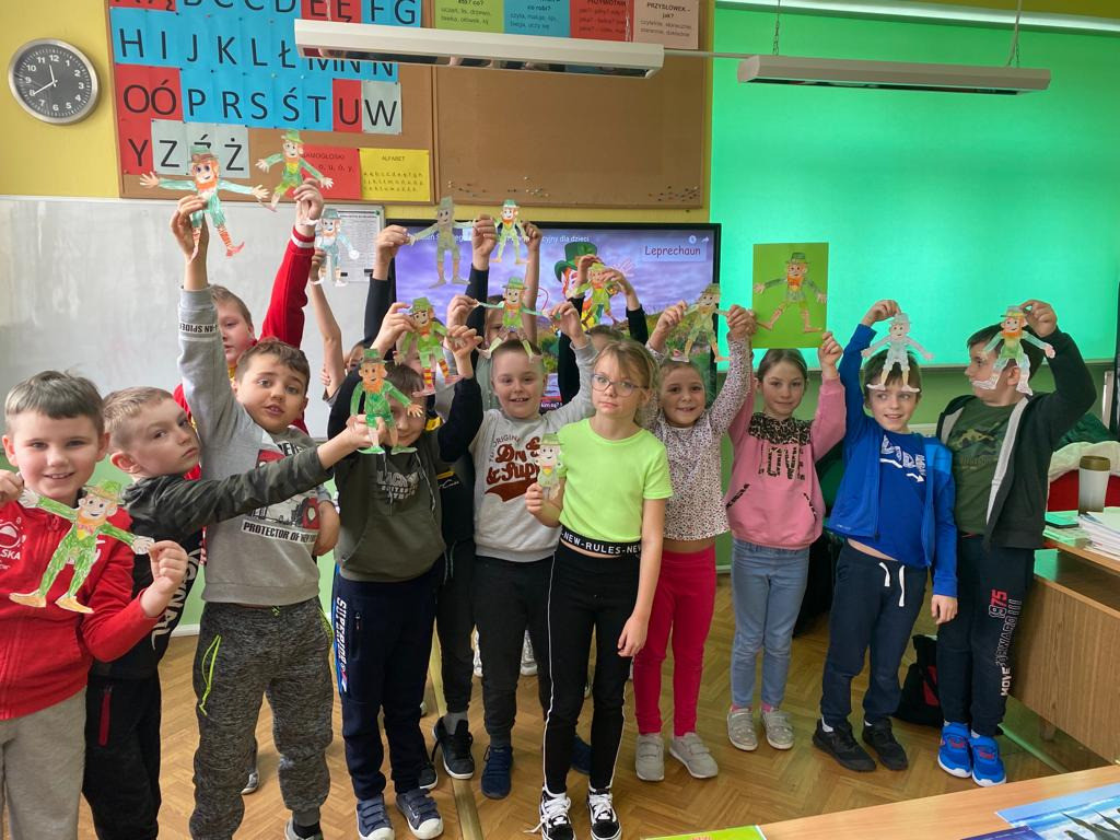 17 marca nasza szkoła zmieniła się w zieloną krainę. W Dniu Świętego Patryka uczniowie przyszli ubrani na zielono i brali udział w grach i zabawach przygotowanych przez nauczycielki języka angielskiego. Było malowanie koniczyny z zamkniętymi oczami, szacowanie ilości koniczyn w pojemniku, rzucanie monetami do garnca i przyczepianie koniczyny. Młodsi uczniowie tworzyli swojego skrzata i próbowali swoich sił w tańcu irlandzkim. Największą popularnością cieszyło się szukanie ukrytych koniczynek. Zabawa była wspaniała.