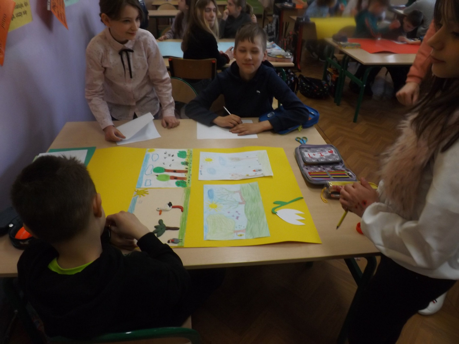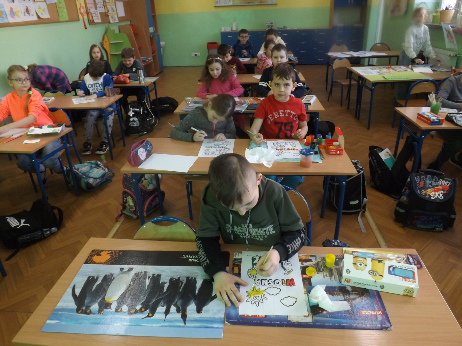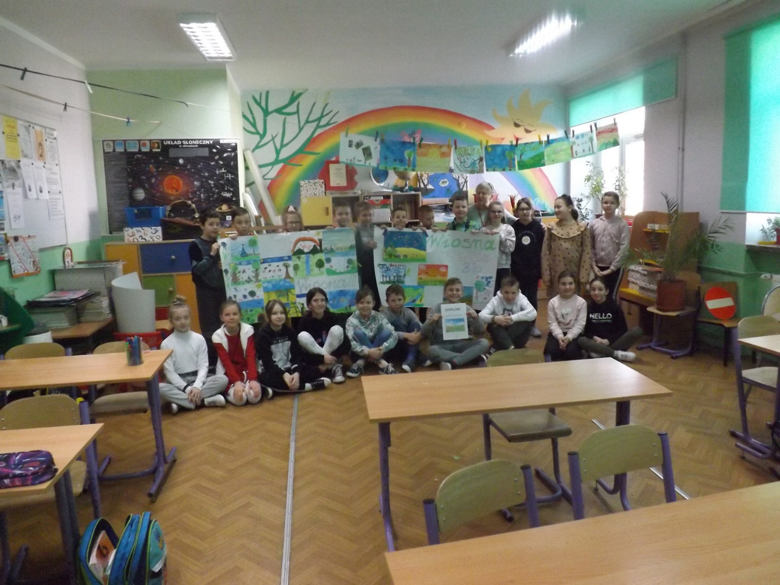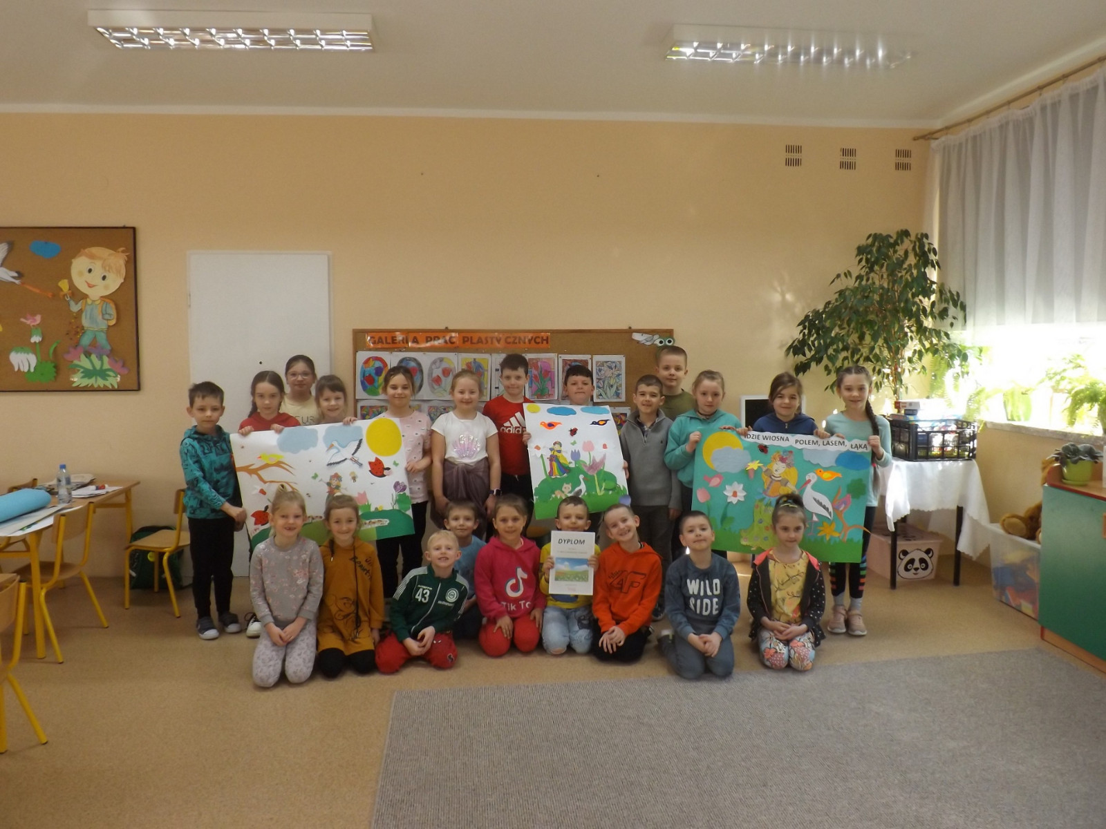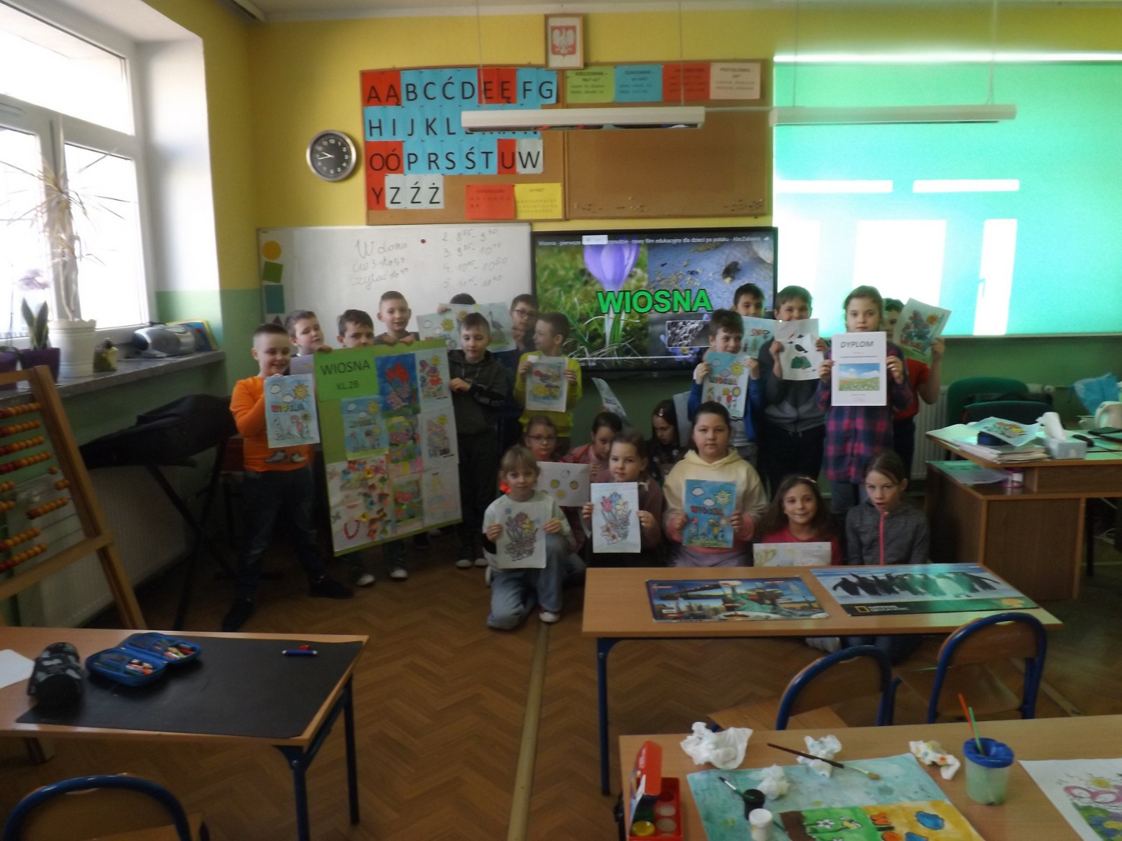 Wiosna to inspirująca pora roku, gdyż natura budzi się do życia. Pierwszy Dzień Wiosny jest wesołym dniem, wyczekiwanym przez wszystkie dzieci. W naszej szkole w klasach I-III radośnie pożegnaliśmy zimę i powitaliśmy wiosnę. Uczniowie ubrani na kolorowo poszukiwali zwiastunów wiosny wokół szkoły oraz wykonali piękne prace plastyczne. Każda klasa otrzymała kolorowy, wiosenny dyplom.