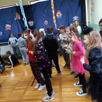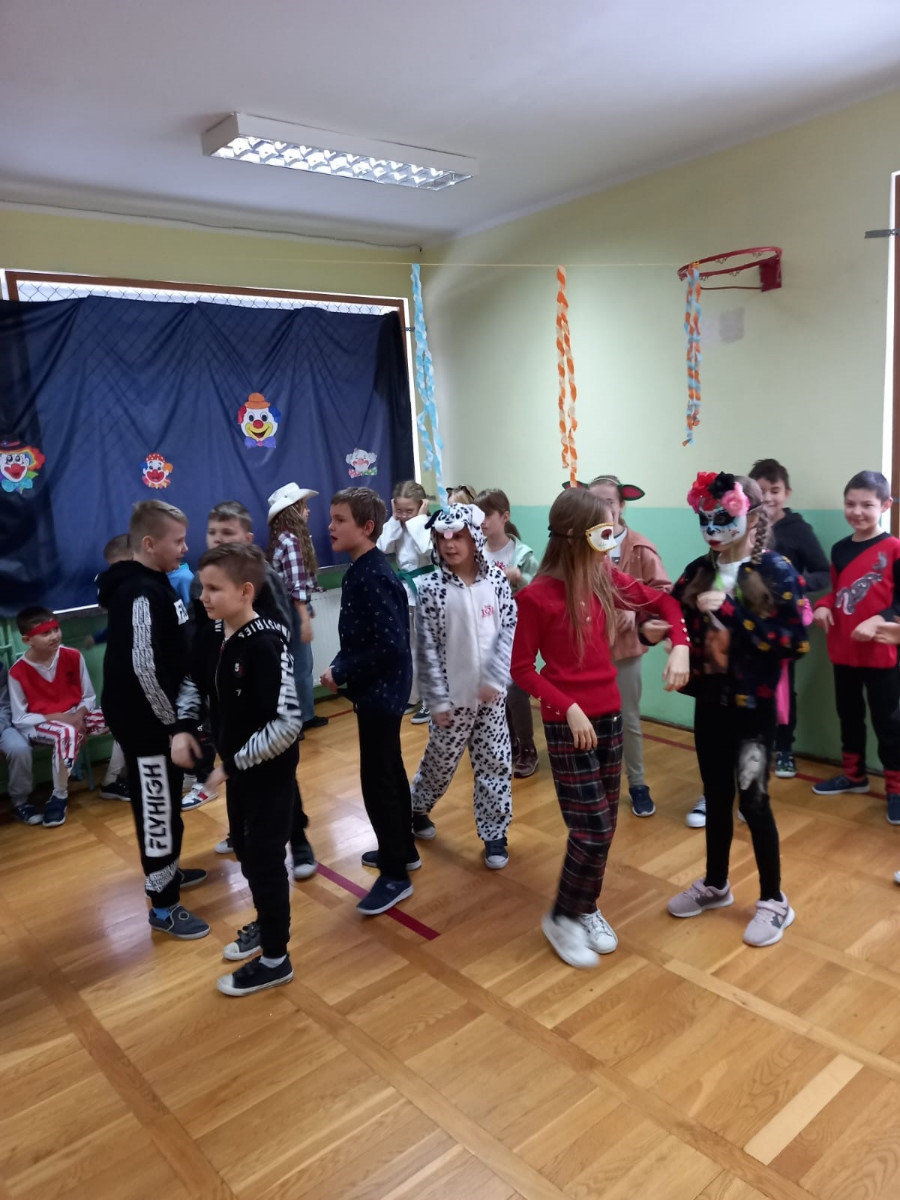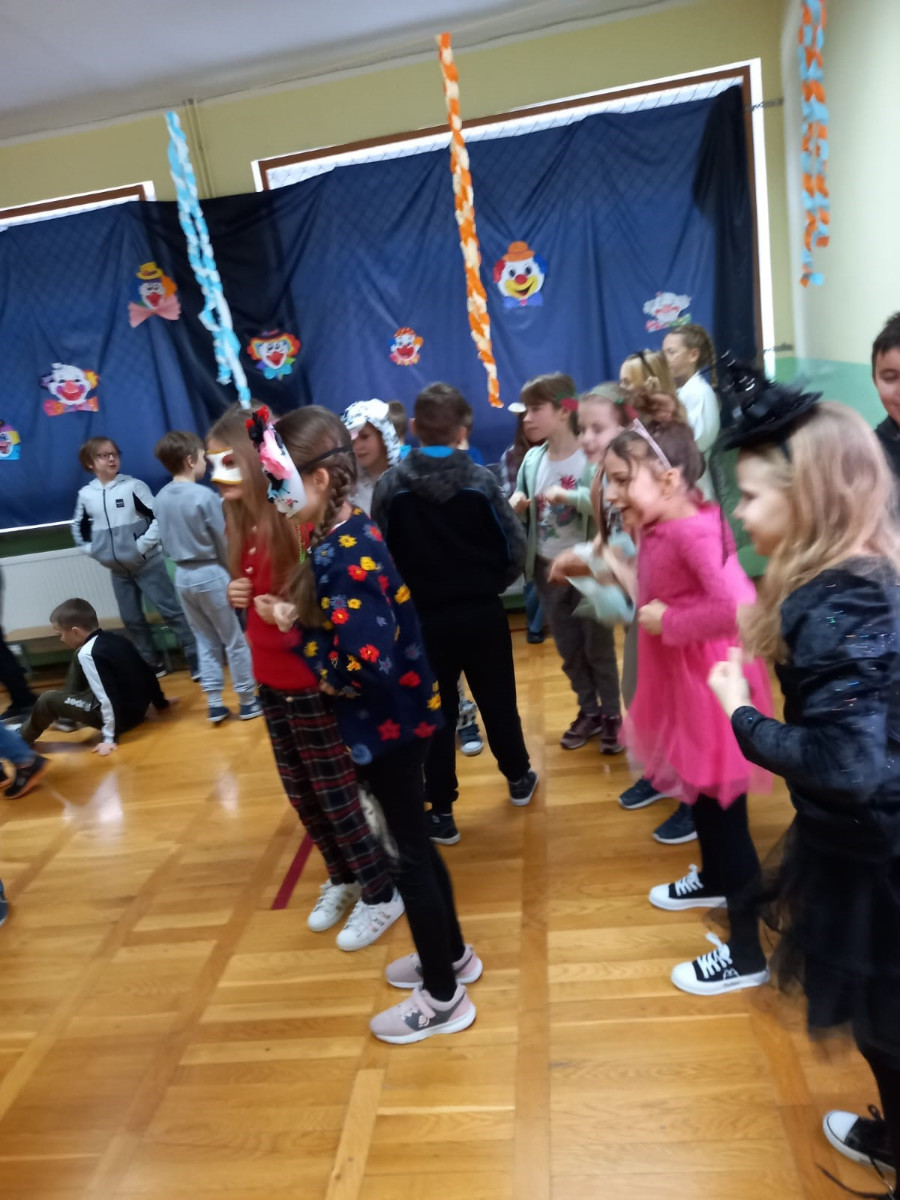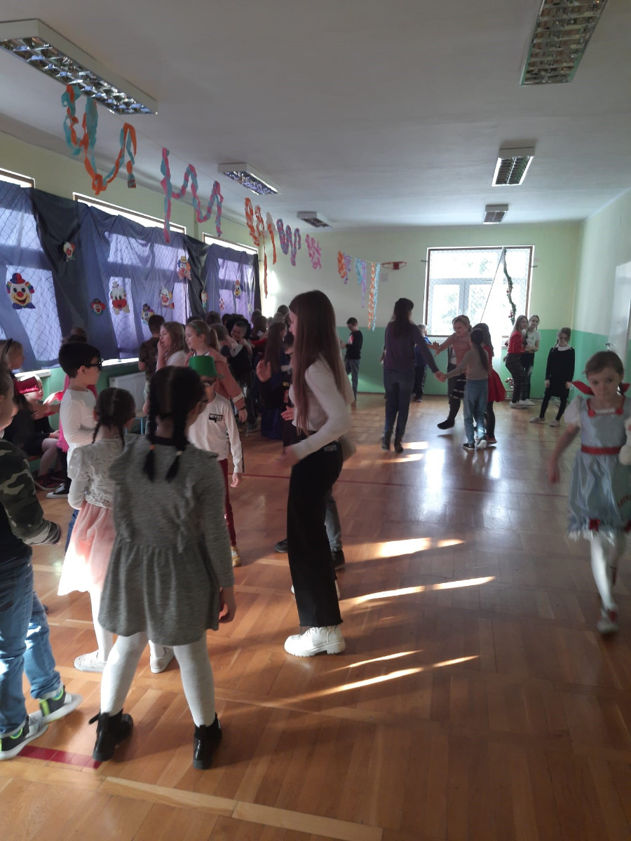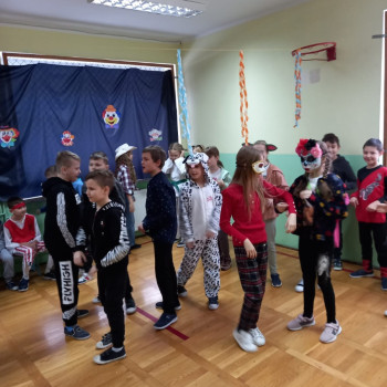 Starsi uczniowie bawili się w godzinach popołudniowych na dyskotece karnawałowej w sali gimnastycznej. Były podskoki, wężyki i zabawa w kółku. Uczniowie tańczyli do muzyki puszczanej przez DJ, który został wynajęty przez Radę Rodziców.