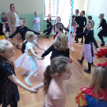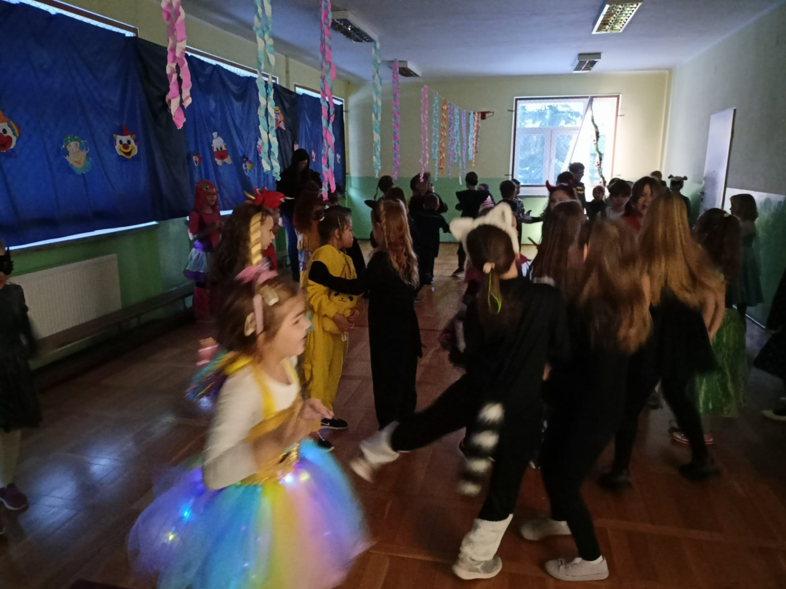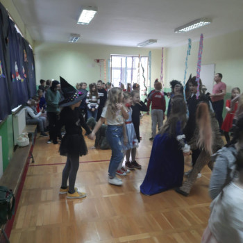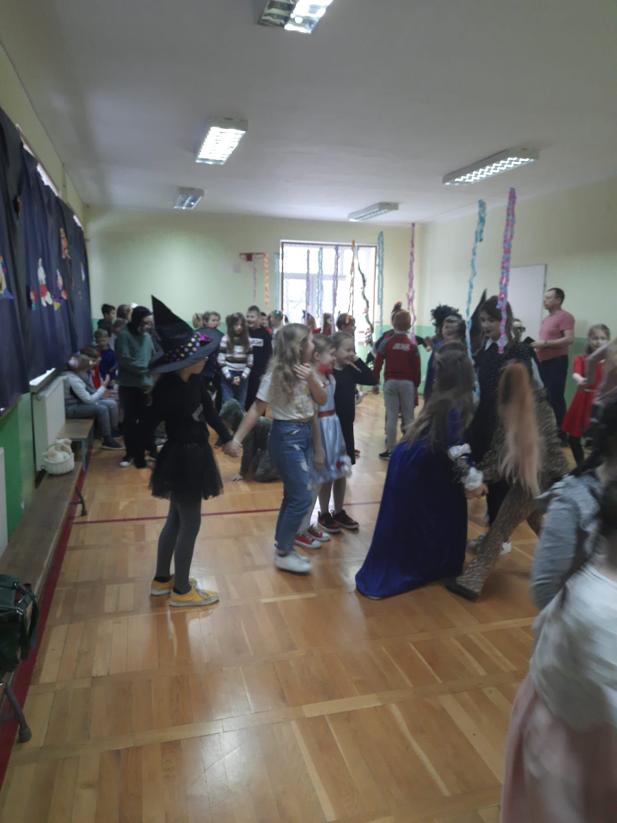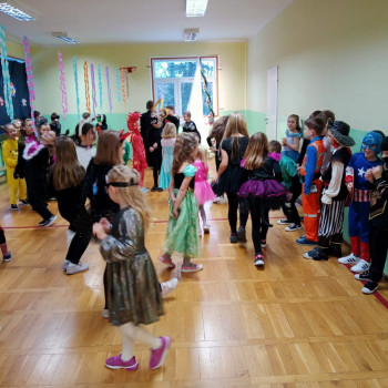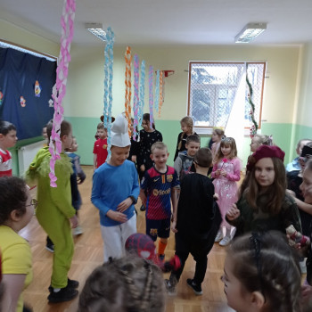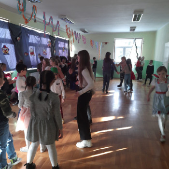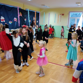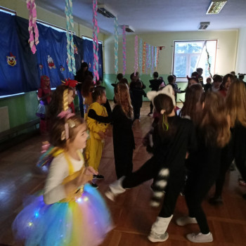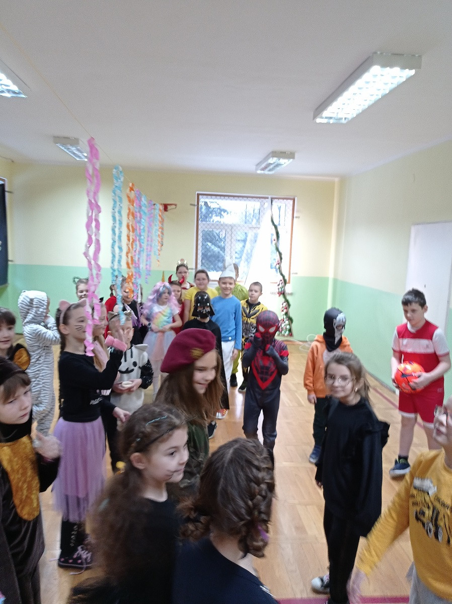 Starsi uczniowie bawili się w godzinach popołudniowych na dyskotece karnawałowej w sali gimnastycznej. Były podskoki, wężyki i zabawa w kółku. Uczniowie tańczyli do muzyki puszczanej przez DJ, który został wynajęty przez Radę Rodziców.