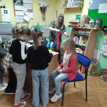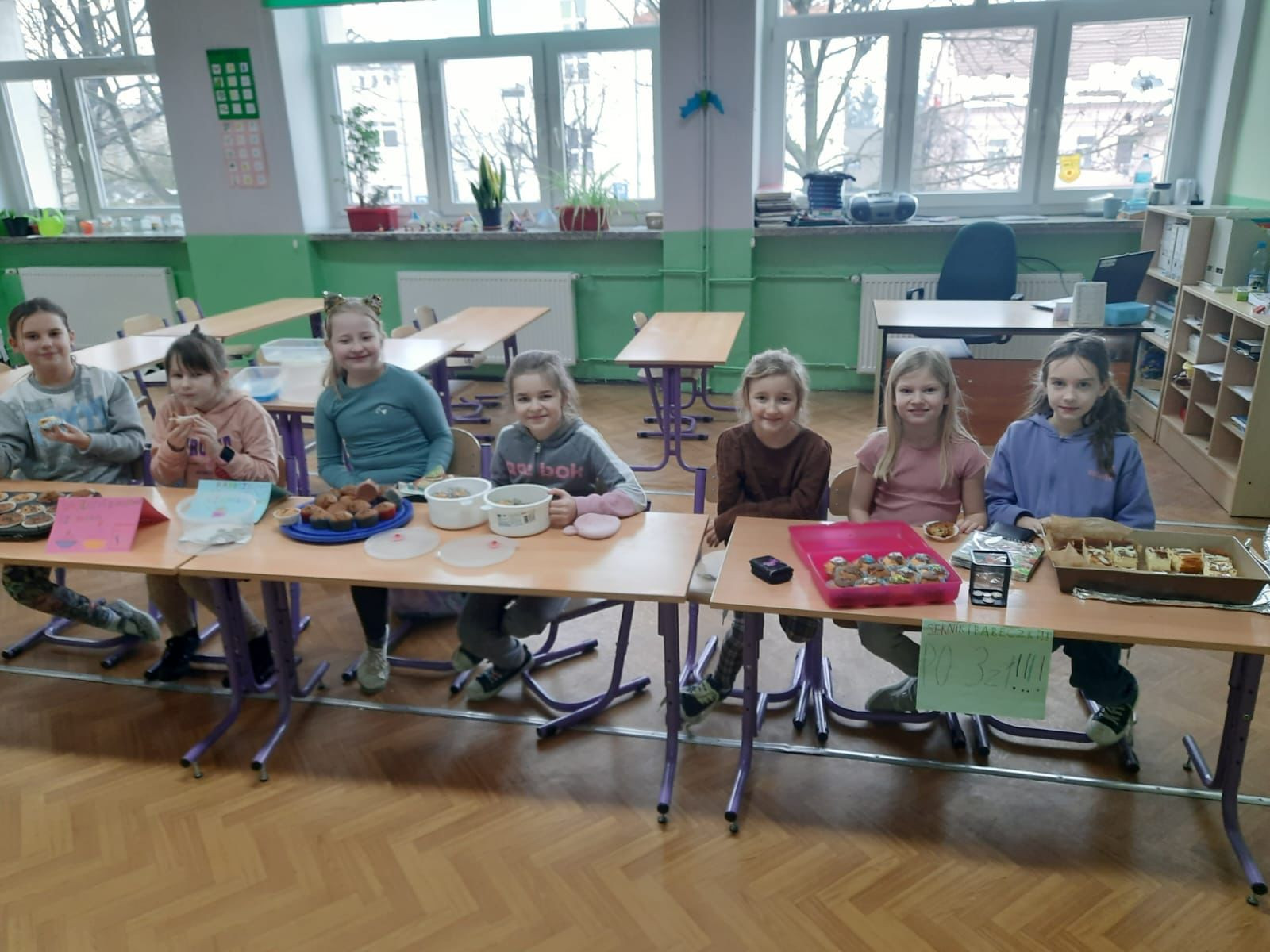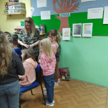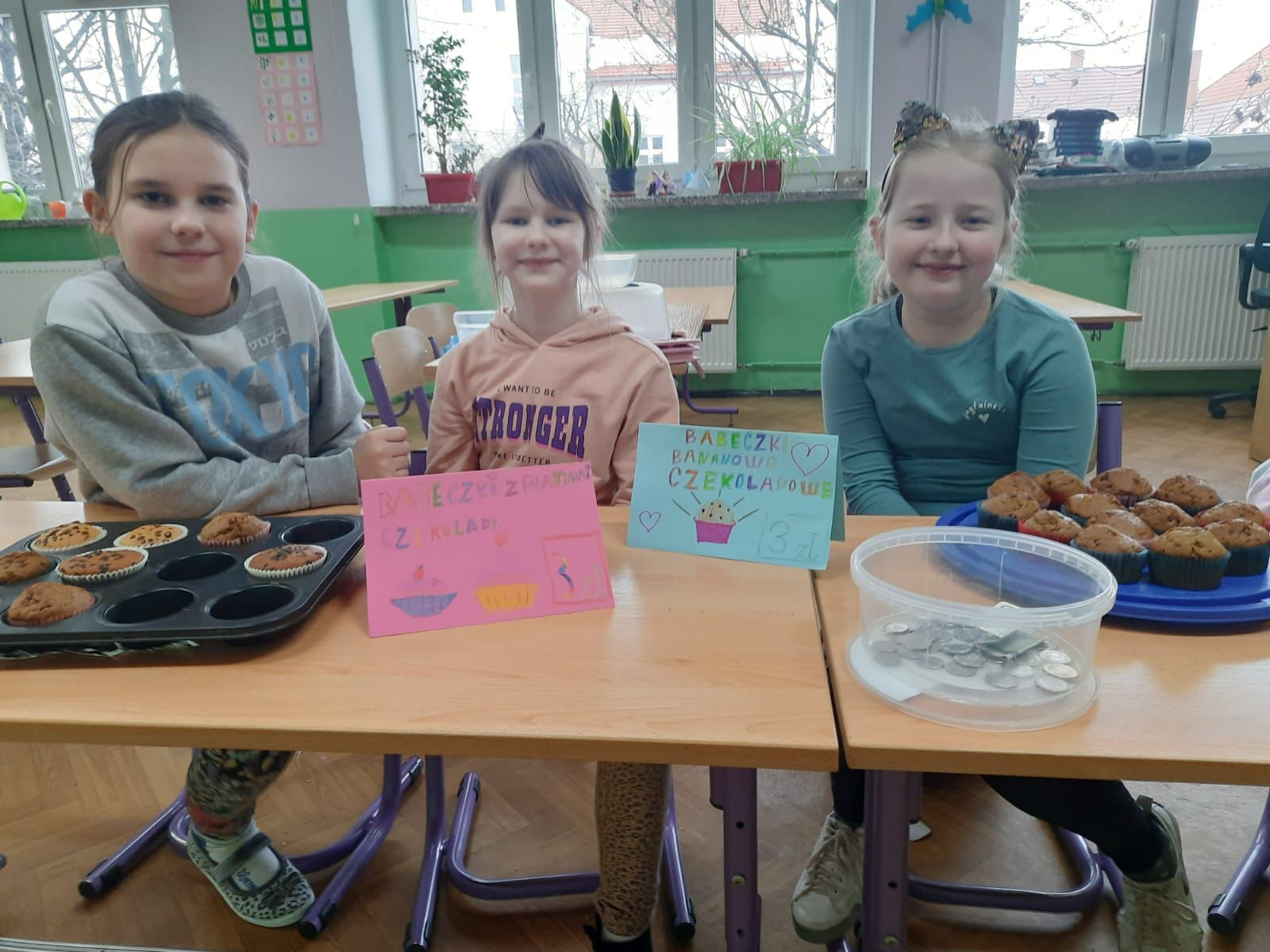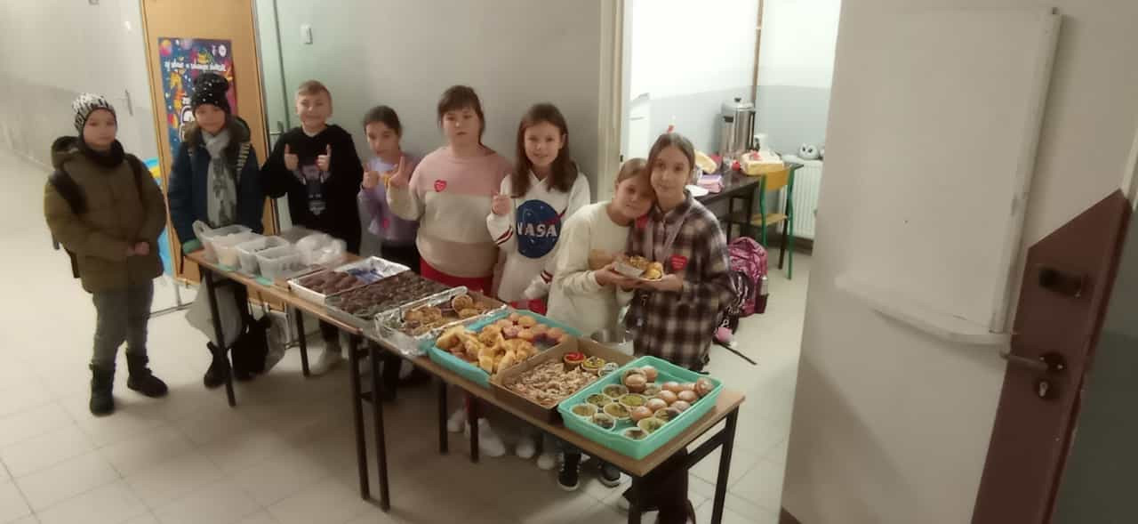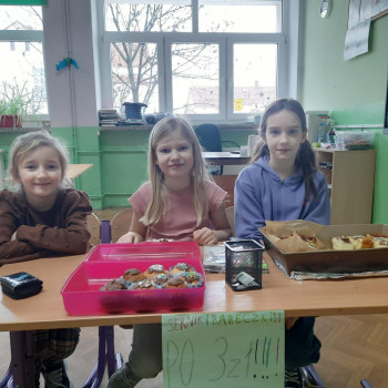 Młodsi uczniowie klas 1-3, zainspirowani działaniami starszych kolegów, sami podjęli sprzedaż w małym budynku. Dziewczynki (oczywiście przy wsparciu mam i babć) zorganizowały sklepik i sprzedawały słodkości na świetlicy szkolnej. Oferowały również różne usługi, np. malowanie paznokci lub zmywalne tatuaże. W czwartek mama uczennicy z klasy 3a proponowała dziewczynkom plecenie warkoczyków. Jesteśmy dumni z małych wolontariuszy, którzy sami wzięli sprawy w swoje ręce i podjęli działania z dobroci ich serduszek. Wielkie brawa! Jesteśmy pod ogromnym wrażeniem!