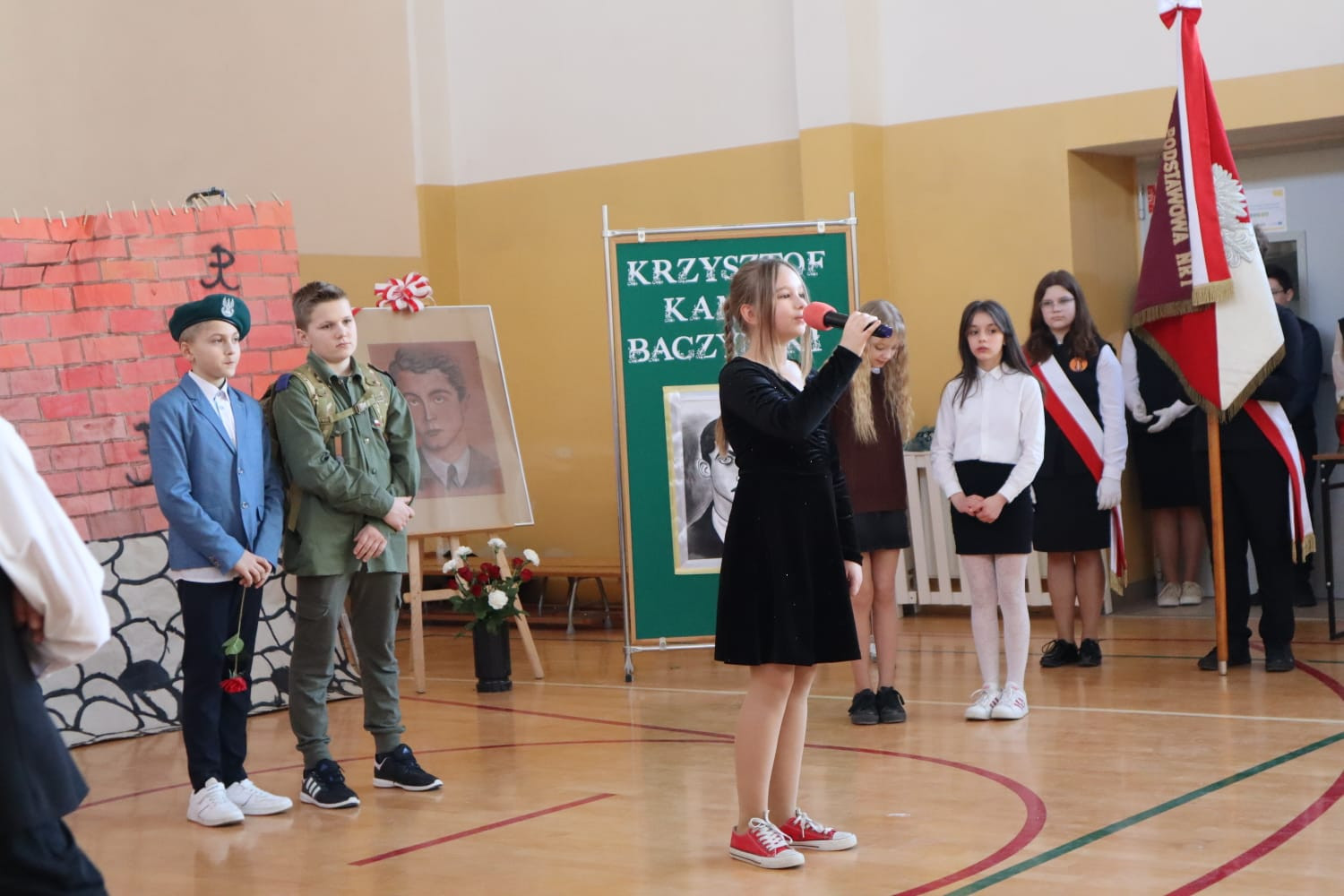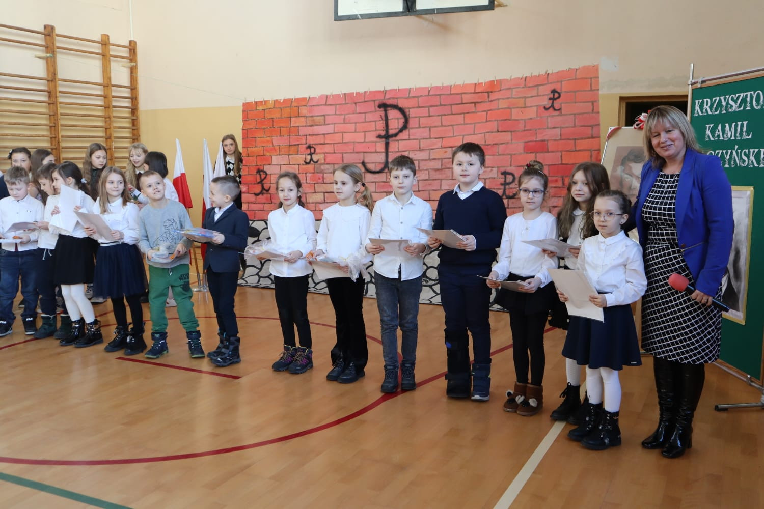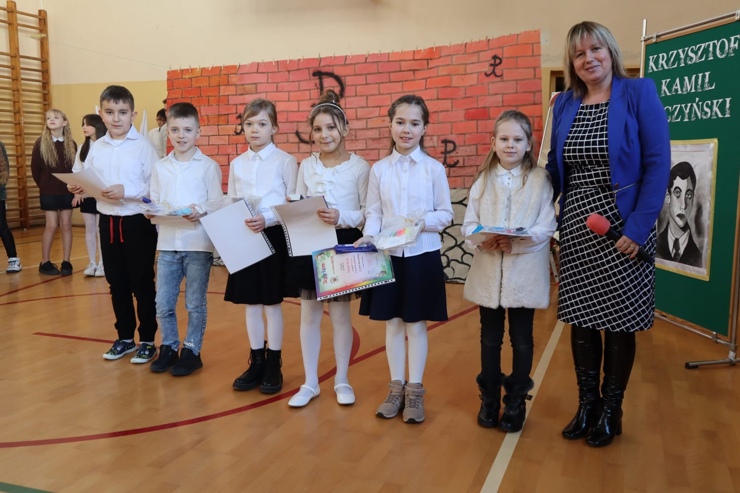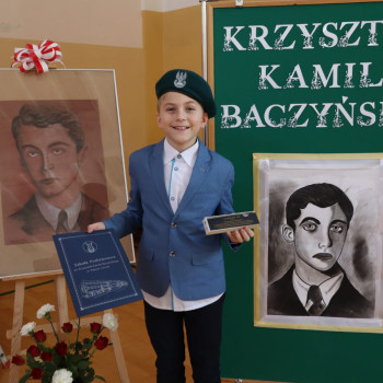 We wszystkich klasach pojawiły się gazetki tematyczne. Zagadnienia dotyczące Patrona nauczyciele realizowali na godzinach z wychowawcą i na lekcjach języka polskiego. Uczniowie klas 1-3 wzięli udział w dwóch konkursach, nad przebiegiem których czuwały: p.E.Chrząszcz, p.B.Betlej, p.G.Motyka i p.M.Wiącek. Najmłodsi wykonywali prace plastyczne na temat „Poezja dziecięca w ilustracjach”, a uczniowie klas drugich i trzecich zmagali się w pisaniu dyktanda, którego głównym bohaterem był Krzysztof Kamil Baczyński. Mistrzynią ortografii została Amelia Miecielica, uczennica kl. 3b, która napisała tekst dyktanda bezbłędnie. Konkurs plastyczny dla najmłodszych wyłonił laureatów w kolejności: