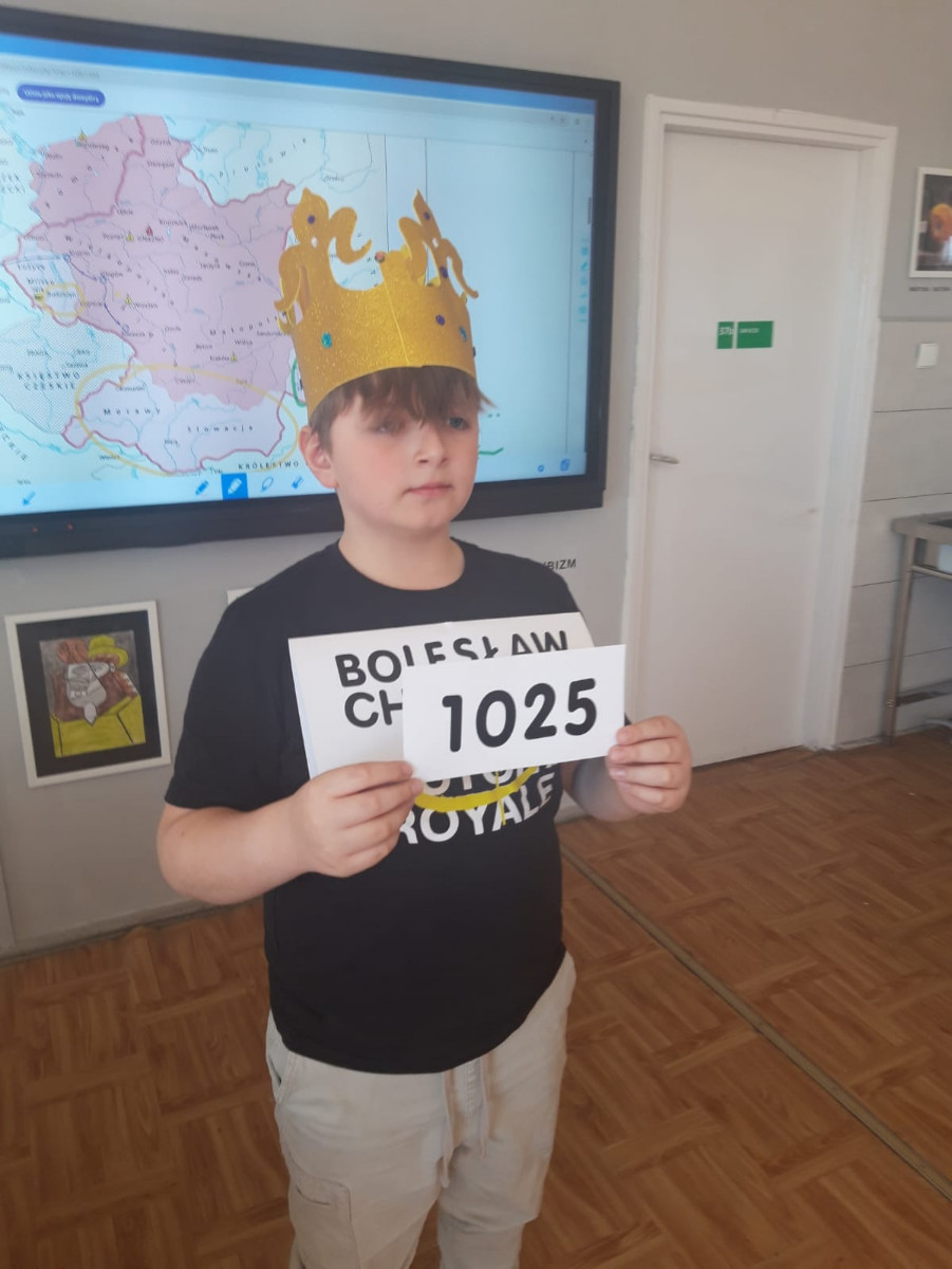 W ramach realizacji następnego dodatkowego działania przeprowadzono w klasach 5-8 lekcje historii. Temat lekcji  brzmiał: „Co przyniosła koronacja Bolesława Chrobrego? Rola koronacji dla dziejów Polski. Ważne momenty  z rządów Bolesława Chrobrego”. Lekcje przeprowadziło, wybranymi przez siebie metodami, dwóch nauczycieli historii. Uczestniczyło w nich w sumie 200 uczniów naszej szkoły. Przy realizacji tematu w klasach 5 i 6 wykorzystano zmodyfikowaną technikę aktywizującą: „pytania do eksperta” oraz elementy „lekcji odwróconej”. Określono wcześniej zakres materiału w poszczególnych klasach. Następnie wybrano eksperta – Bolesława Chrobrego, który, korzystając z wcześniej zdobytej wiedzy, zadaje pytania uczniom w klasie na temat swoich rządów i ich znaczenia dla Polski. Uczniowie mieli podczas lekcji do dyspozycji źródła takie jak: podręcznik dla kl.5, „Historię Polski” ,Atlas Historyczny; mogli z nich korzystać w celu uzupełnienia wiedzy. Kolejne lekcje realizujące powyższy temat zostały przeprowadzone w klasach ósmych. Wykorzystano podczas nich Zintegrowaną Platformę Edukacyjną, pracę z tekstem źródłowym - uczniowie pracowali z fragmentami kronik Anonima zw. Gallem i Thietmara z Merseburga oraz z atlasami historycznymi. Lekcję przeprowadzono wykorzystując techniki aktywizujące. Zadanie to zostało wykonane pod kierunkiem p. Anny Passis, p. Elżbiety Zarzecznej oraz. p. Krystiana Bieleckiego.
