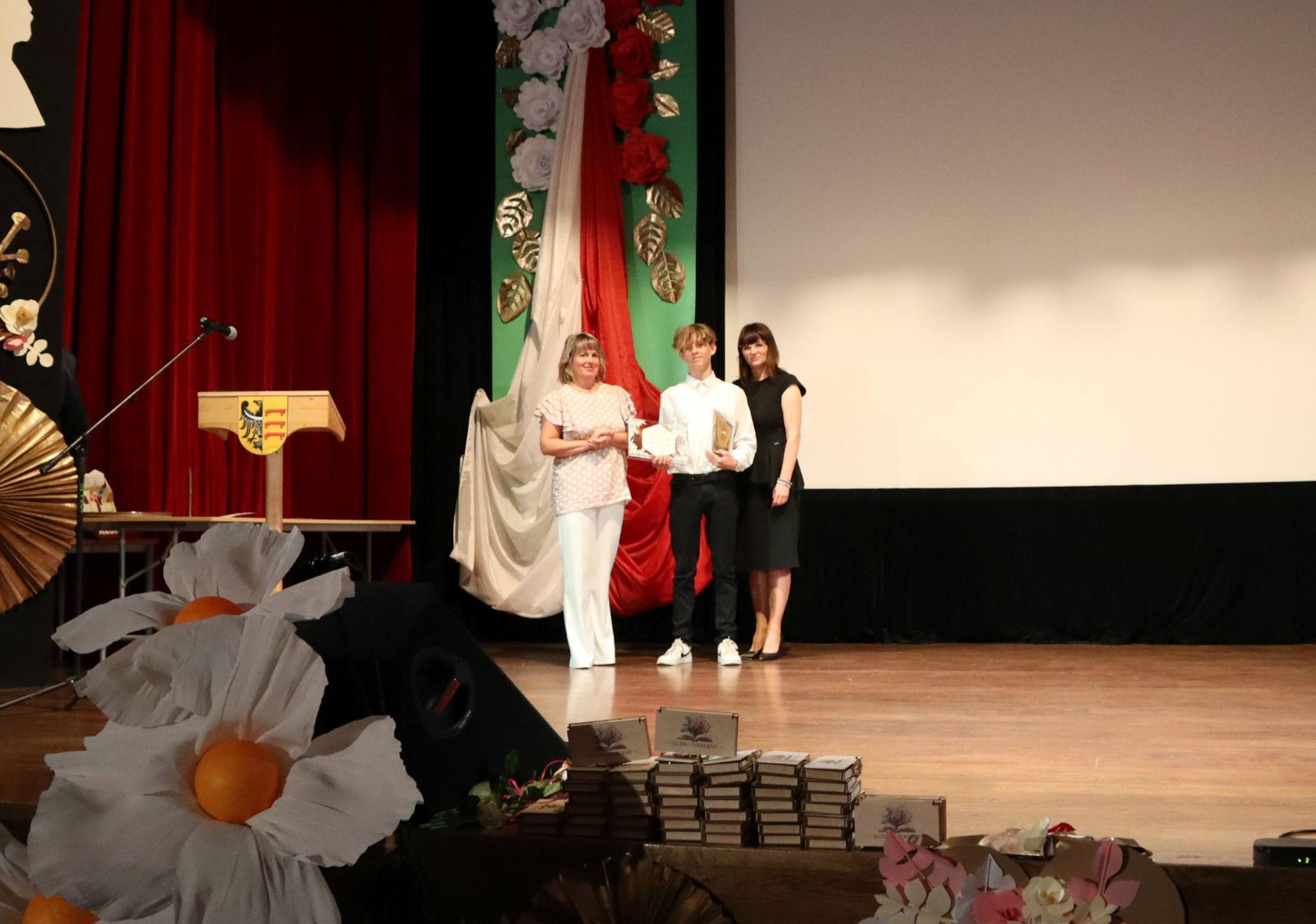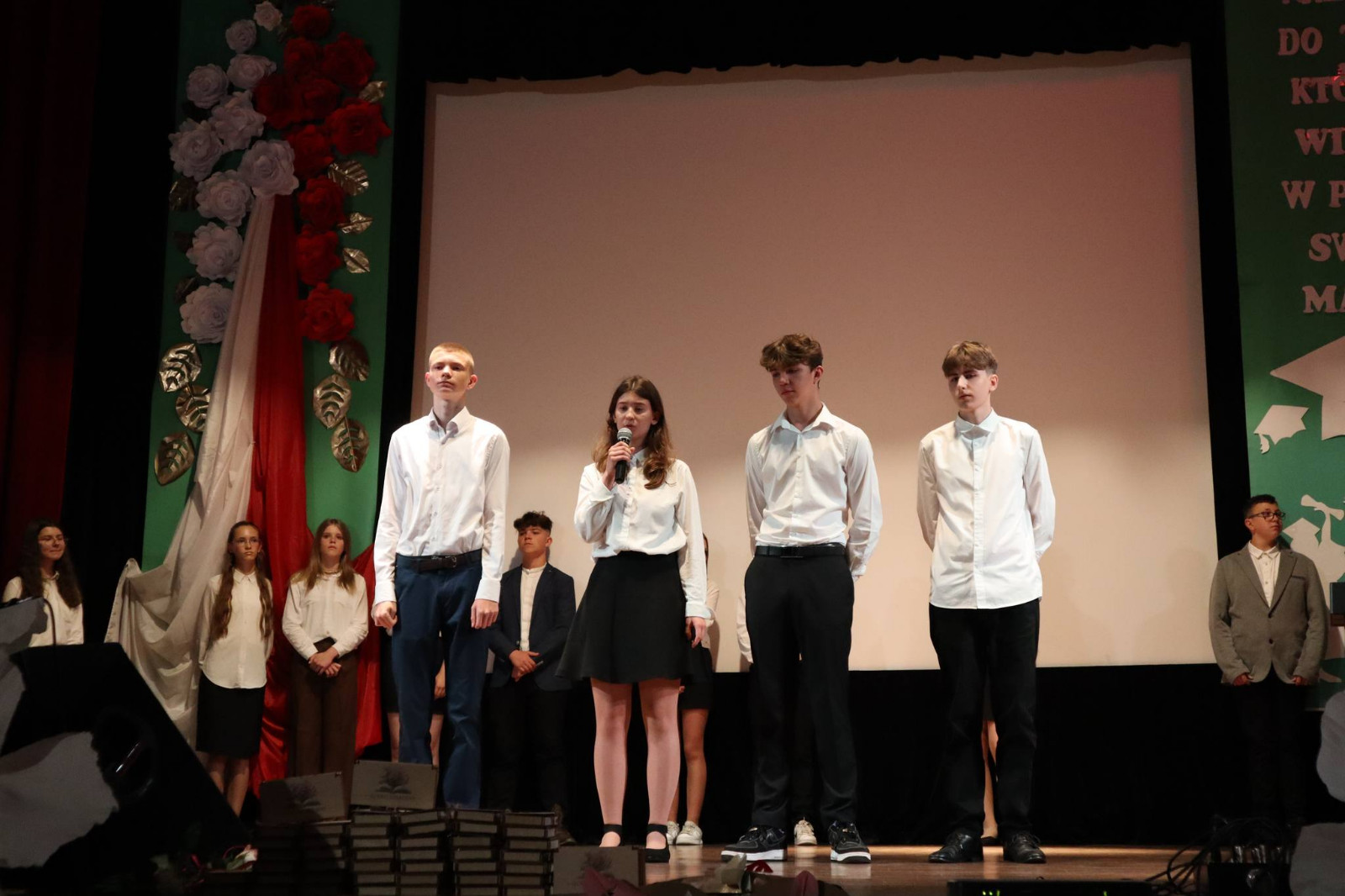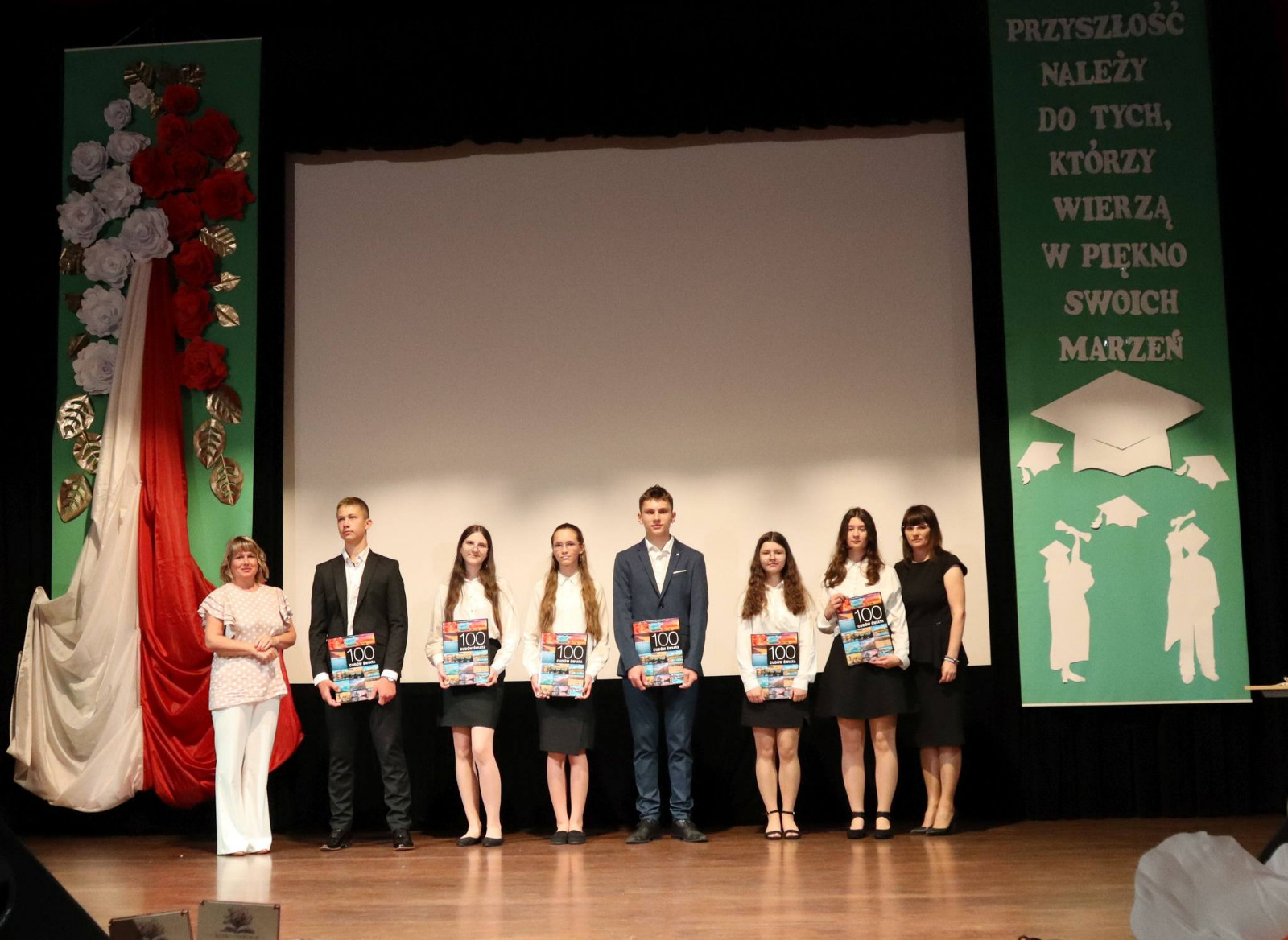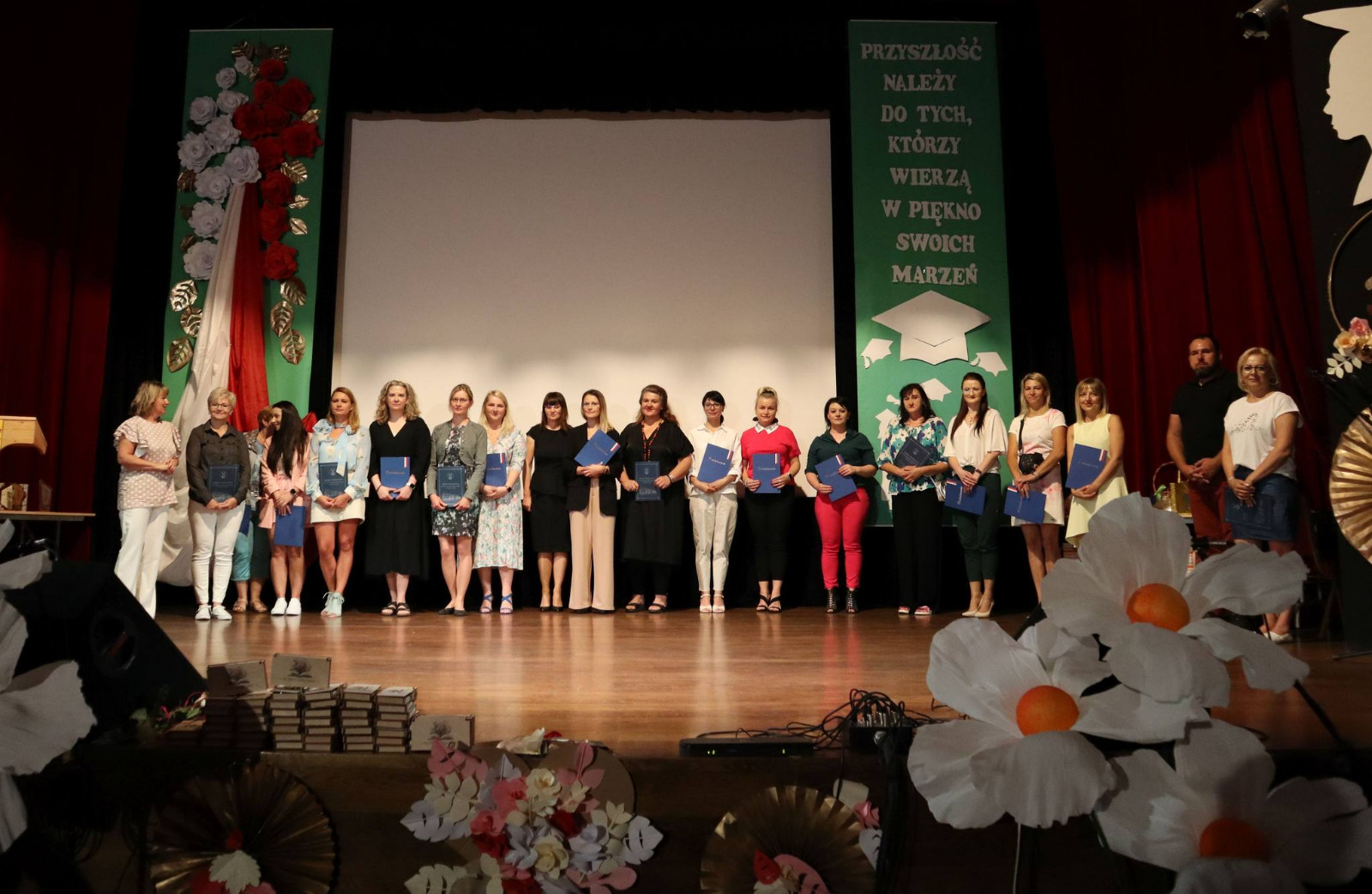 Nagrodę Burmistrza wręczył p.K.Chudyk, a otrzymali ją: Adrian Dybisz w kategorii naukowej i Liliana Śmidoda w kategorii artystycznej. Następnie p.dyr. D.Zaręba i wychowawca klasy 8a p.M.Skowrońska-Sowa wręczyły statuetki i nagrody książkowe. Najlepszym Absolwentem i Osobowością Roku został Adrian Dybisz, Najlepszym Sportowcem Michał Czechowski, a świadectwa z wyróżnieniem otrzymali: Adrian Dybisz, Liliana Śmidoda, Sofiia Sheptytska, Agata Przybyszewska i Alicja Leginowicz. Podziękowania dostał także poczet sztandarowy: Oliwier Faron, Lena Kucharek, Alicja Leginowicz, Adrian Dybisz, Liliana Śmidoda i Sofiia Sheptytska. Rodzice otrzymali listy gratulacyjne oraz podziękowania za pracę na rzecz klasy i szkoły. Tytuł Nauczyciela Roku decyzją uczniów otrzymała p.Lena Łuczyńska.