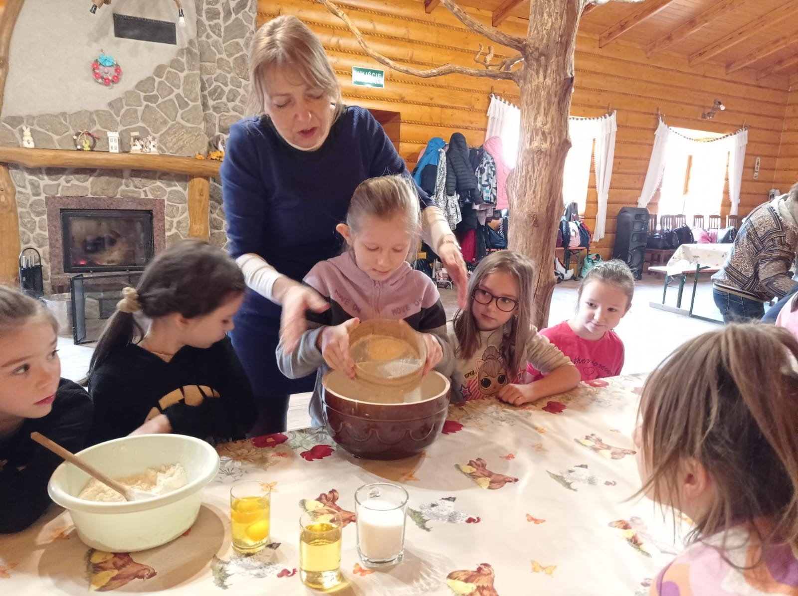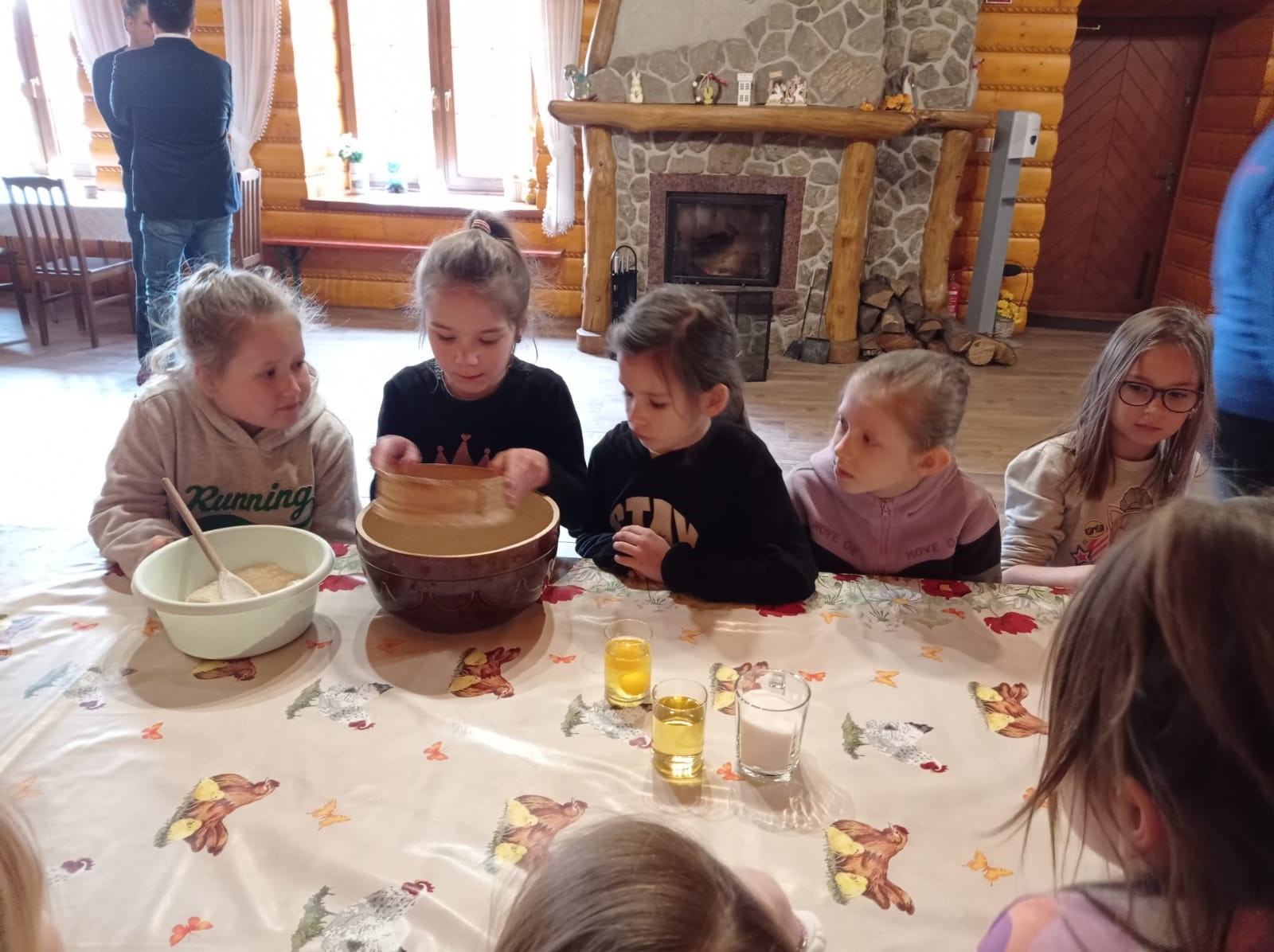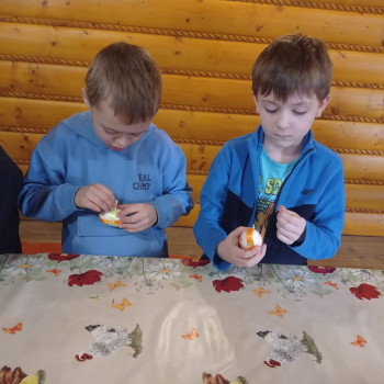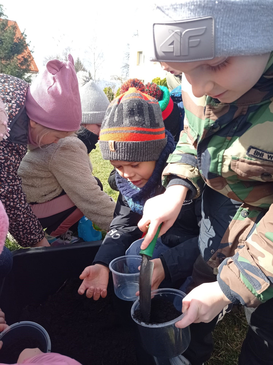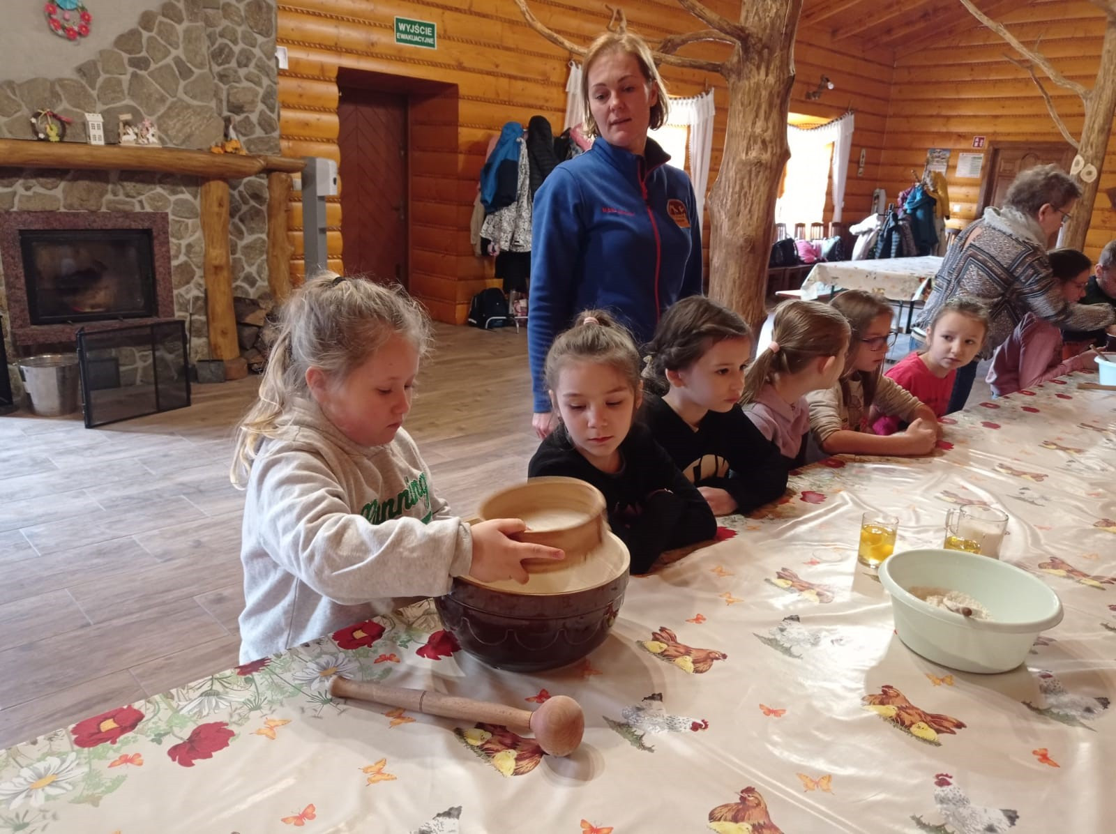 Uczniowie mieli okazję samodzielnie przygotować ciasto na babeczki, które ucierali w makutrach z ogromnym zaangażowaniem i uśmiechem. Czas przeznaczony na pieczenie babeczek wykorzystali na przygotowanie pięknych pisanek ozdabianych według własnych pomysłów. Dużą atrakcją dla dzieci była wizyta w stajni, gdzie mogły z bliska zobaczyć zwierzęta oraz przez chwilę zająć się nimi jak prawdziwi rolnicy. Kolejnym punktem w programie warsztatów było sianie owsa.Po ciężkiej pracy przyszedł czas na integracyjne zabawy oraz delektowanie się słodkim poczęstunkiem w postaci babeczek.