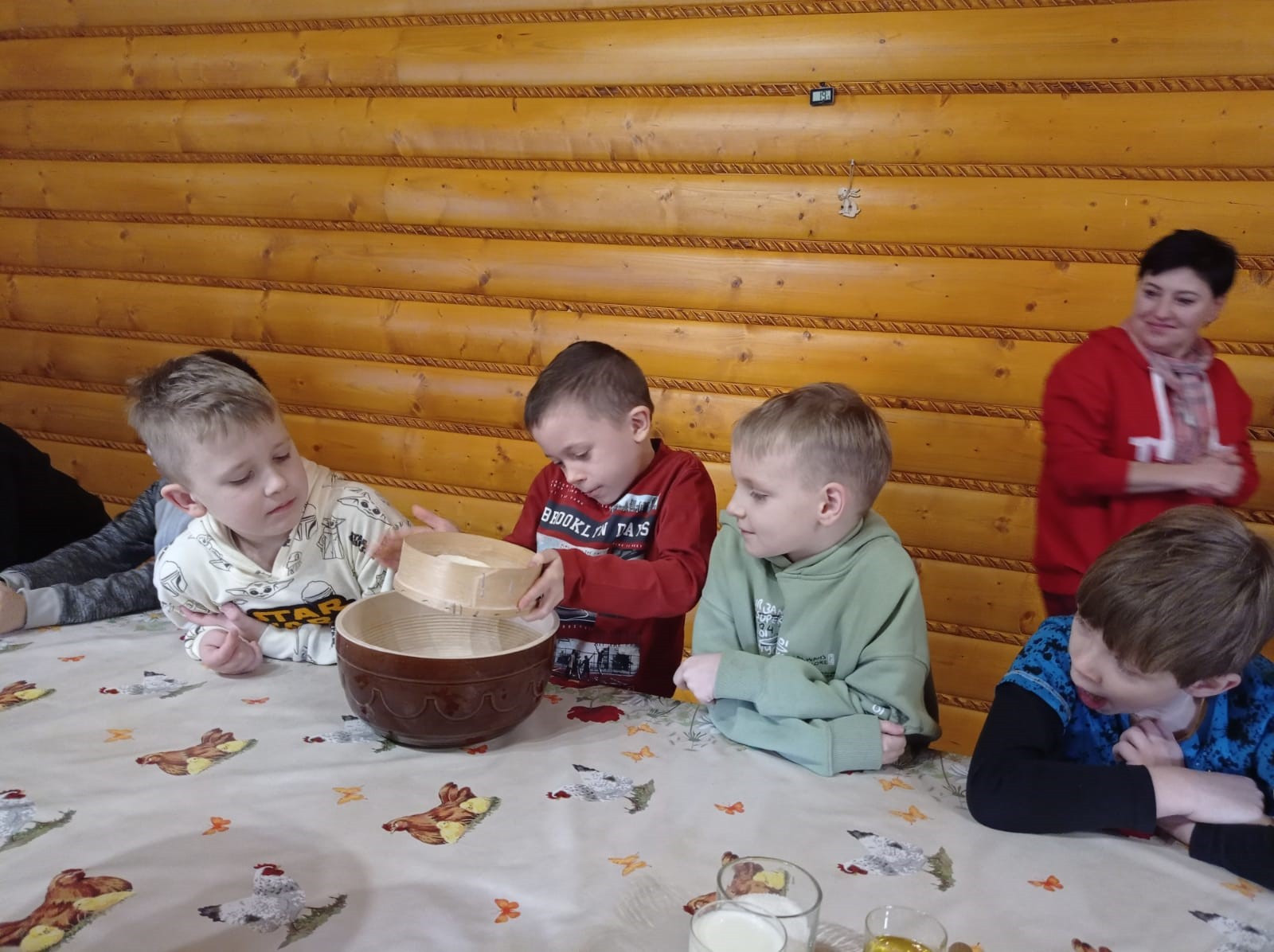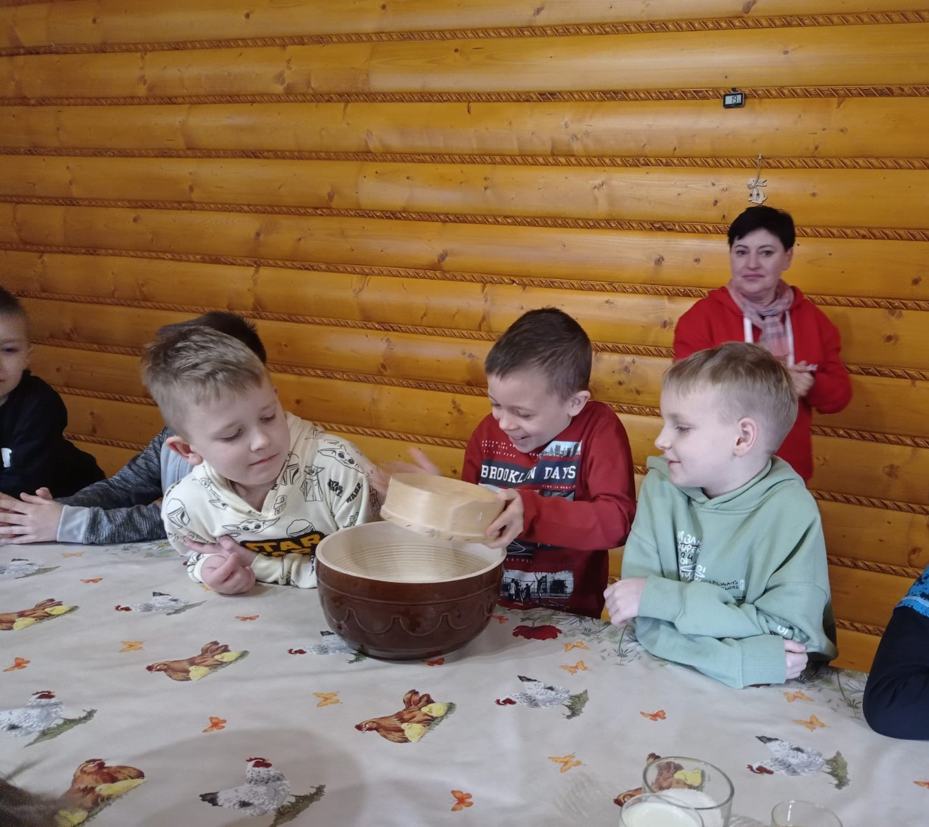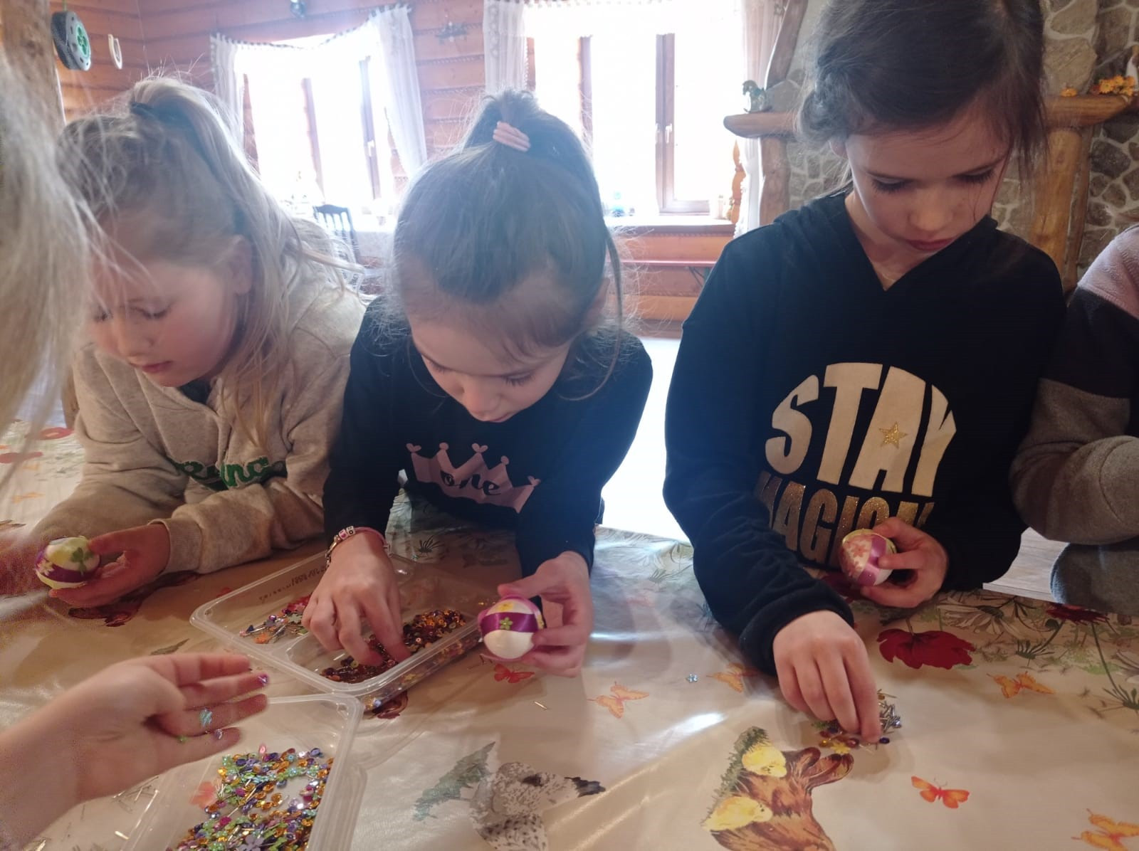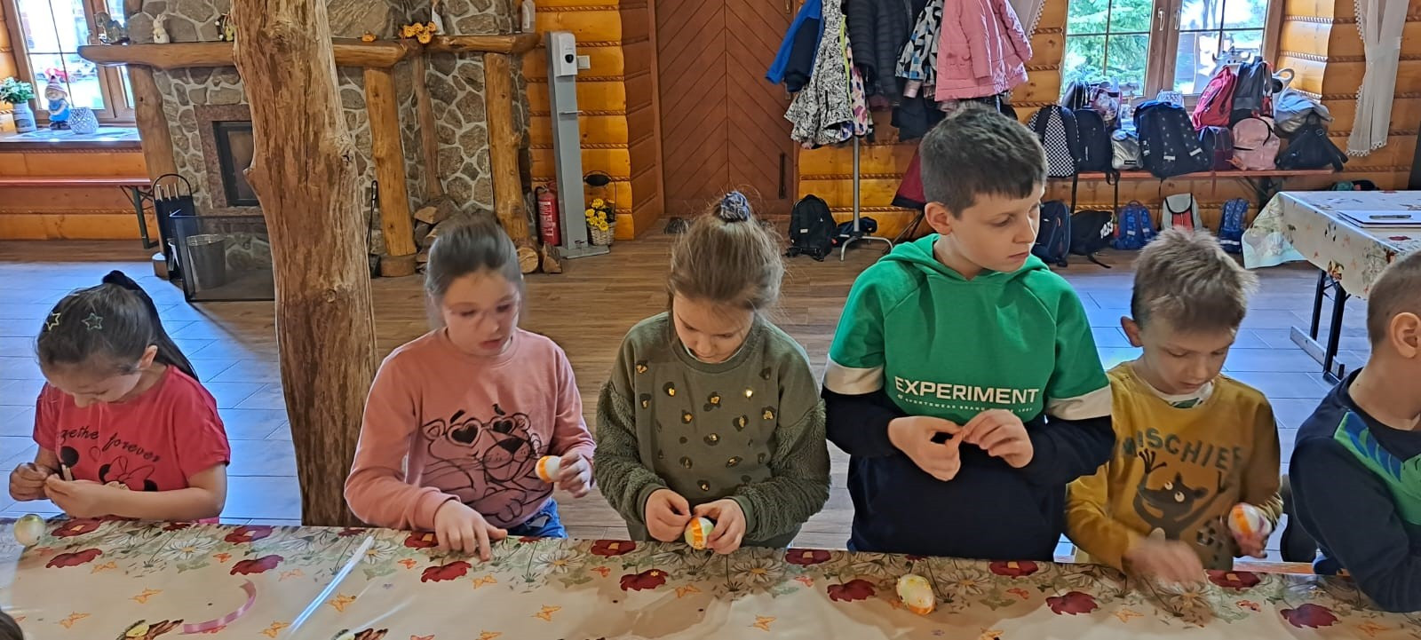 Uczniowie mieli okazję samodzielnie przygotować ciasto na babeczki, które ucierali w makutrach z ogromnym zaangażowaniem i uśmiechem. Czas przeznaczony na pieczenie babeczek wykorzystali na przygotowanie pięknych pisanek ozdabianych według własnych pomysłów. Dużą atrakcją dla dzieci była wizyta w stajni, gdzie mogły z bliska zobaczyć zwierzęta oraz przez chwilę zająć się nimi jak prawdziwi rolnicy. Kolejnym punktem w programie warsztatów było sianie owsa.Po ciężkiej pracy przyszedł czas na integracyjne zabawy oraz delektowanie się słodkim poczęstunkiem w postaci babeczek.