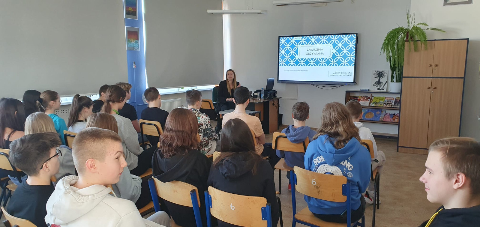 W kolejne środy 01. oraz 08. marca 2023r. w naszej szkole odbyły się w ramach promocji zdrowia prelekcje dotyczące zaburzeń odżywiania, które poprowadziła Pani Paulina Ignasiak-Kuźmicz pracownik Powiatowej Stacji Epidemiologicznej w Dzierżoniowie. W spotkaniu wzięli udział uczniowie klasy siódmej oraz klas ósmych.