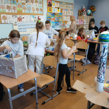 Na zajęciach języka polskiego pod kierunkiem nauczycielek pani Marioli Jabłońskiej i pani Marty Skowrońskiej -Sowy uczniowie klas 4a, 4s i 5b w grupach projektowali własne misje kosmiczne na nieznane planety, odpowiadając na kluczowe pytania dotyczące celu misji, technologii, logistyki, wyzwań oraz jej promocji. Uczniowie tworzyli plakaty o planetach, kosmiczne słowniczki, opowiadania pt. „Kosmiczna misja” oraz modele rakiet i sond kosmicznych. Swoje projekty prezentowali na forum klasy.