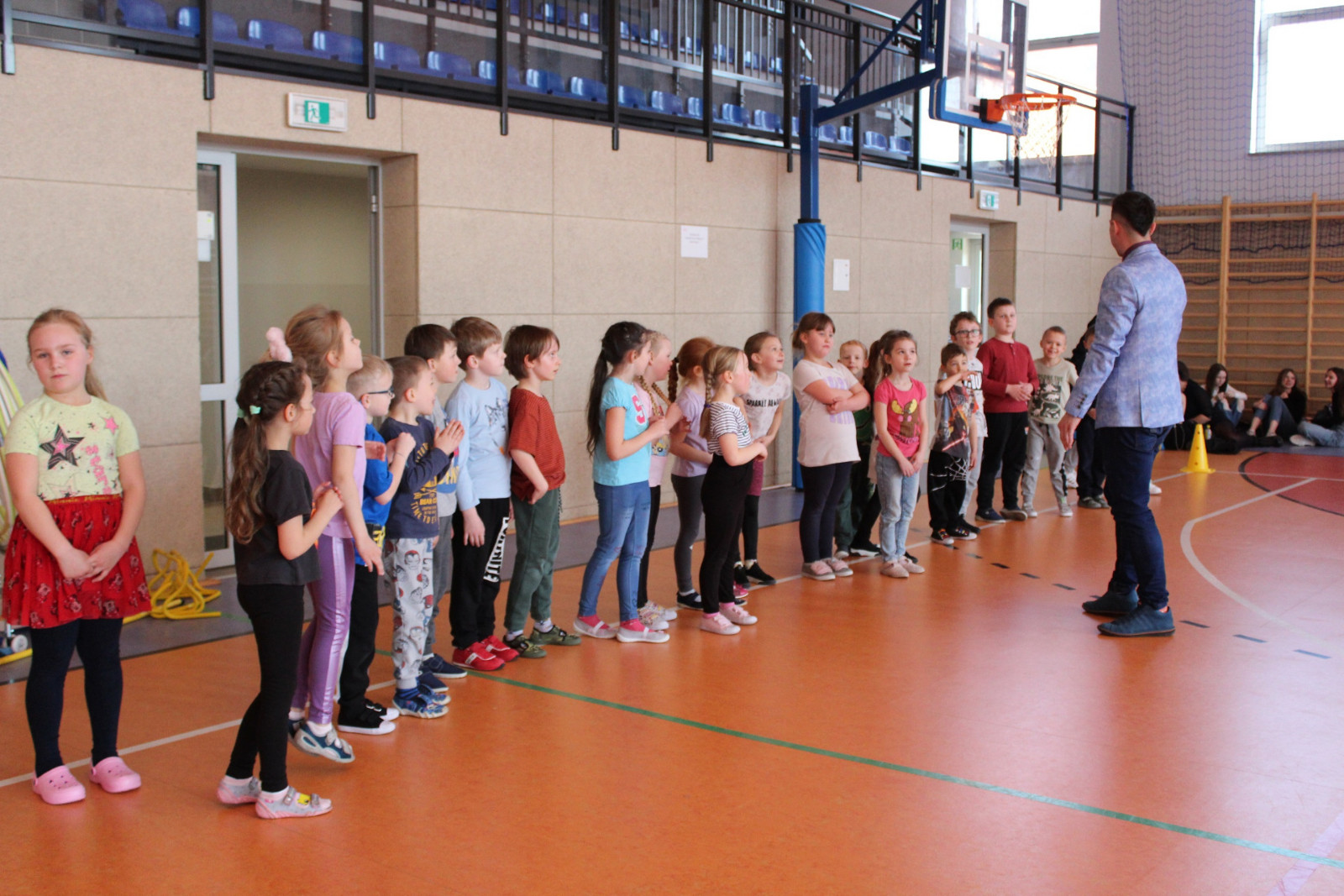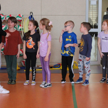 24 i 31 marca gościliśmy na hali sportowej dzieci z przedszkola, które już od września 2022r. będą uczęszczać do klas pierwszych. „Pszczółki” , „Biedronki”  i "Myszki" (tak nazywają się grupy przedszkolne) wzięły udział w różnego typu ćwiczeniach sportowych mających na celu zapoznanie się z warunkami panującymi na hali sportowej, wspólną integrację oraz popularyzowanie gier i zabaw sportowych charakterystycznych dla tej grupy wiekowej.