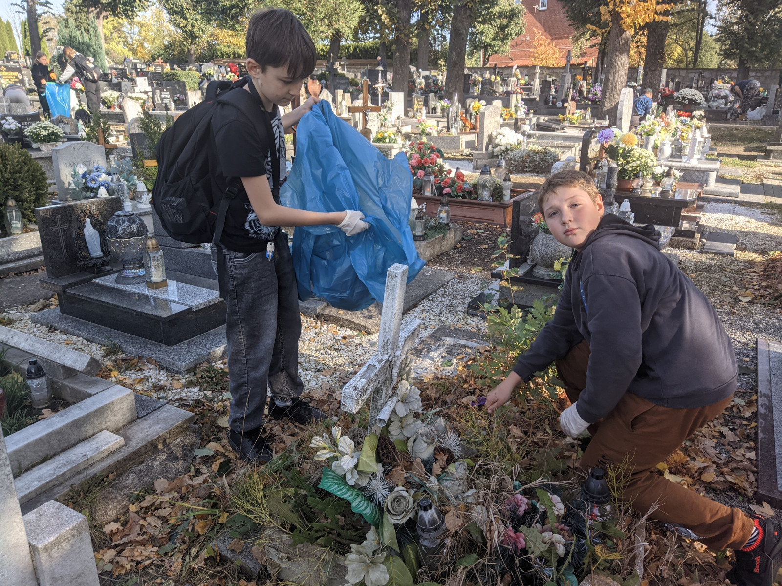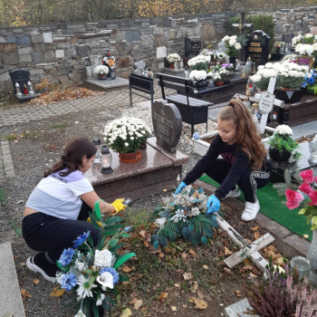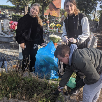 Ponadto w okresie, w którym wspominamy naszych bliskich, pamiętaliśmy o opuszczonych i bezimiennych grobach znajdujących się na cmentarzu w Piławie Górnej. Uczniowie – wolontariusze ze Szkolnego Koła Wolontariatu „Krzyśki” oraz nauczyciele porządkowali groby i zapalili znicze. Przygotowaliśmy również gazetkę ścienną poświęconą pamięci tych, których nie ma już z nami.