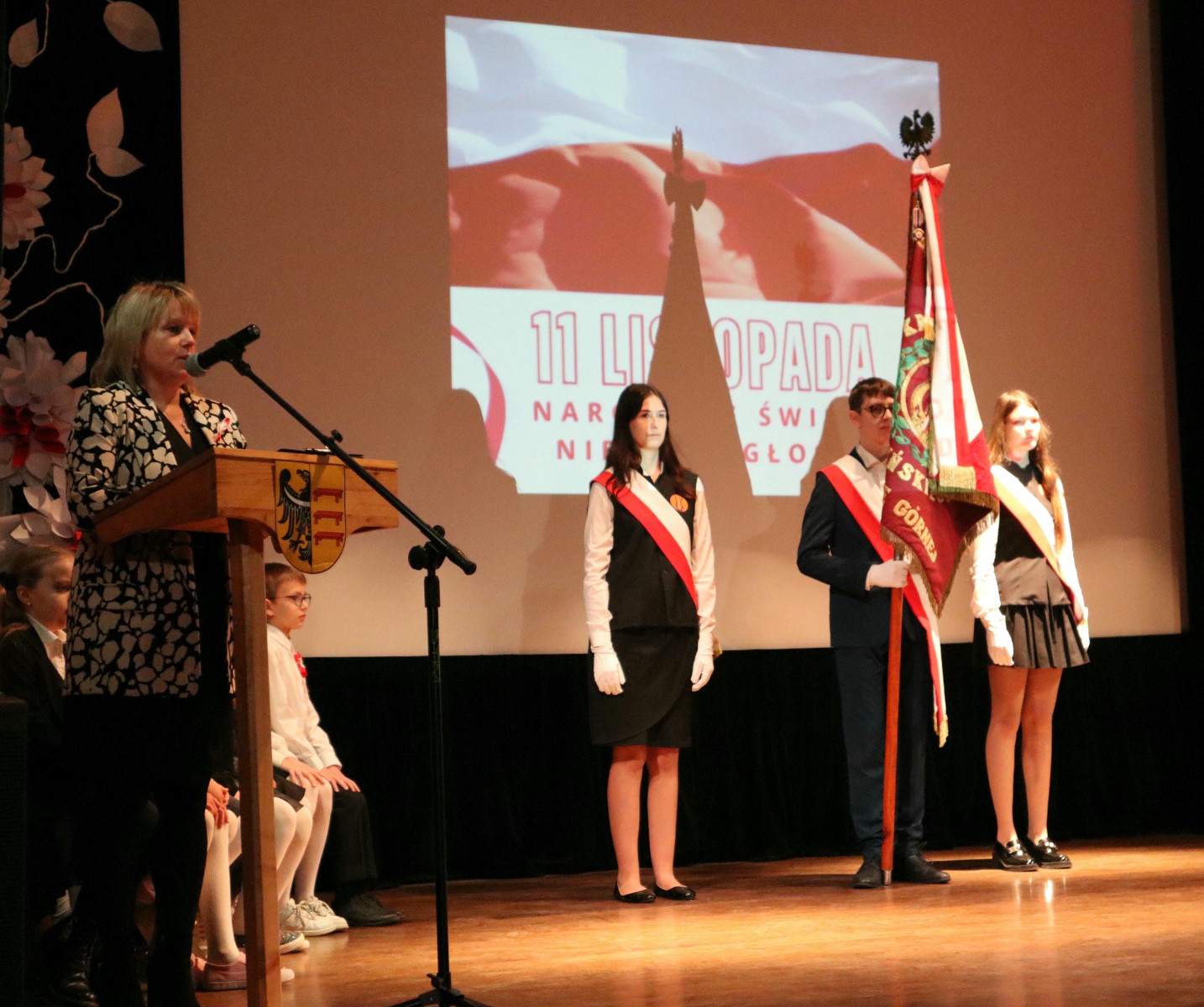 8 listopada w sali widowiskowej Miejskiego Ośrodka Kultury odbyła się uroczysta akademia z okazji Narodowego Święta Niepodległości. Cały występ z wielkim zainteresowaniem i w pełnym skupieniu obejrzeli i wysłuchali uczniowie Szkoły Podstawowej im. K.K. Baczyńskiego w Piławie Górnej oraz zaproszeni goście: Zastępca Burmistrza Pani Marta Sochacka-Pelczar, inspektor ds. oświaty Pani Magdalena Kochowska, Wiceprzewodniczący Rady Miasta Pan Wiktor Jeziorski, Zastępca Prezesa Oddziału Związku Sybiraków we Wrocławiu Pan Eugeniusz Kuszka, dyrektor MOKiB-u Pani Iwona Szuba, dyrektor przedszkola Pani Barbara Mazur, dyrektor żłobka Pani Anetta Burek-Uchman oraz przedstawiciel Rady Miasta Pani Justyna Karaś.