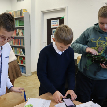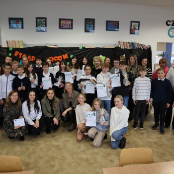 Zadaniem konkursowym uczniów było rozwiązanie zagadek, wpisanie odpowiedniego kodu do kłódki i wydostanie się z pokoju.