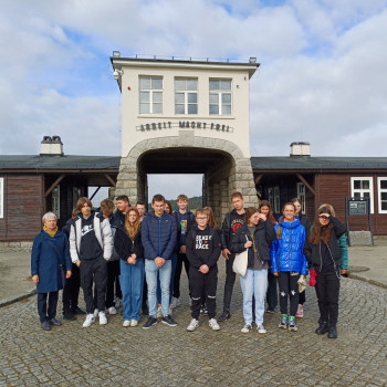 W tym roku szkolnym realizujemy projekt Dolnośląskiego Kuratora Oświaty o Polakach, którzy z narażeniem życia ratowali osoby narodowości żydowskiej podczas II wojny światowej. W ramach zaplanowanych działań 10 października 2023 roku uczniowie klasy 8a wzięli udział w wycieczce edukacyjno-historycznej do Muzeum Gross-Rosen w Rogoźnicy. Gross-Rosen to obóz koncentracyjny działający od sierpnia 1940 do 1945 roku na leżącym wtedy w granicach Niemiec Dolnym Śląsku, niedaleko miejscowości o tej samej nazwie. Więźniów zatrudniano do pracy w pobliskich kamieniołomach granitu oraz zakładach włókienniczych. Na początku uczniowie obejrzeli film historyczny przygotowany w oparciu o wspomnienia i relacje byłych więźniów. Następnie wysłuchali wykładu na temat historii tego miejsca i wnikliwie zapoznali się z ekspozycjami muzealnymi. Potem wzięli udział w warsztatach edukacyjnych pt. „Bohaterowie w pasiakach”. Na koniec przeszli po terenie obozu, wysłuchując kolejnych opowieści przewodnika. Z zabudowań i instalacji dawnego obozu macierzystego zachowały się: brama obozowa, fragmenty ogrodzenia, fundamenty baraków oraz wież strażniczych, drogi wewnętrzne obozu oraz część krematorium polowego. Szacuje się, że przez kompleks obozowy Gross-Rosen przeszło około 125 tysięcy więźniów, w tym ponad 60 tysięcy Żydów. Nasi uczniowie byli bardzo poruszeni i przejęci podczas zwiedzania tego miejsca. Wyjazdy do Gross-Rosen na stałe już wpisze się do tradycji naszej szkoły w ramach lekcji języka polskiego, historii i godzin wychowawczych, na których omawia się okres wojny i okupacji.